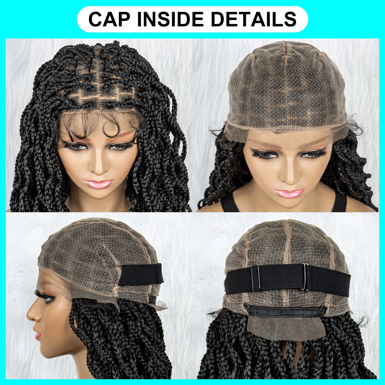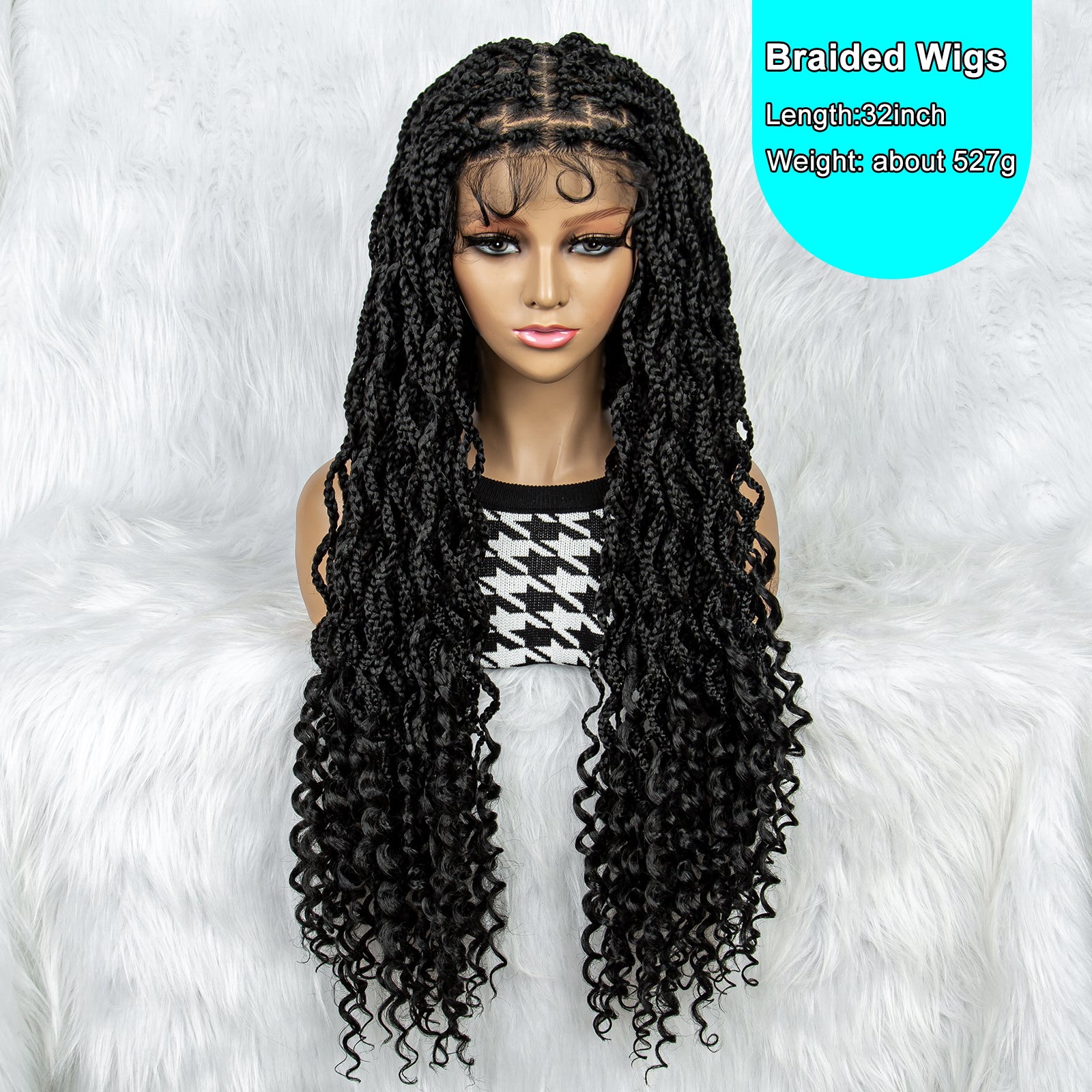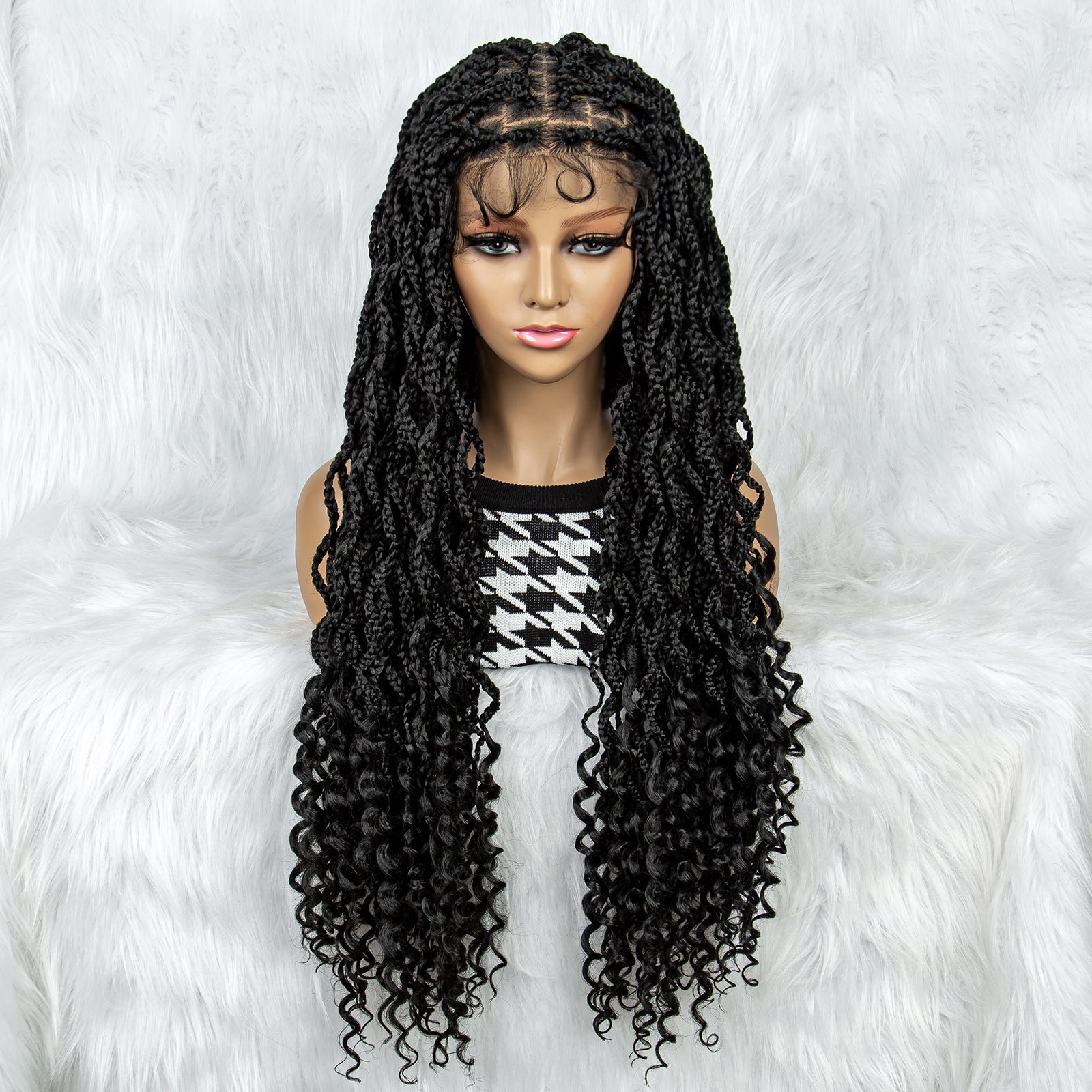 041 Synthetic Lace Front Braided Wigs Goddess Faux Locs Braids Wigs with Curly Ends for Black Women Knotless Box Braiding Hair Wigs
