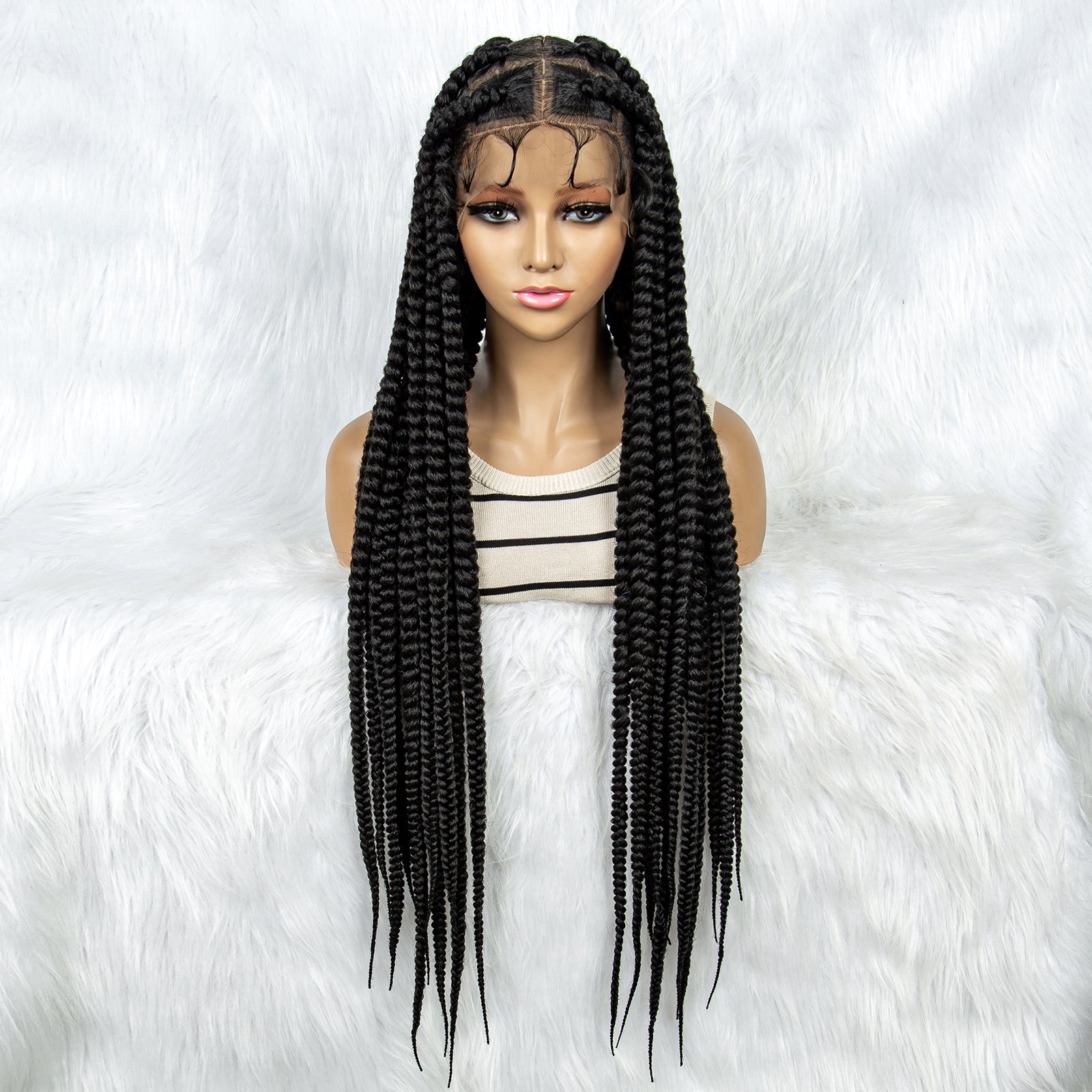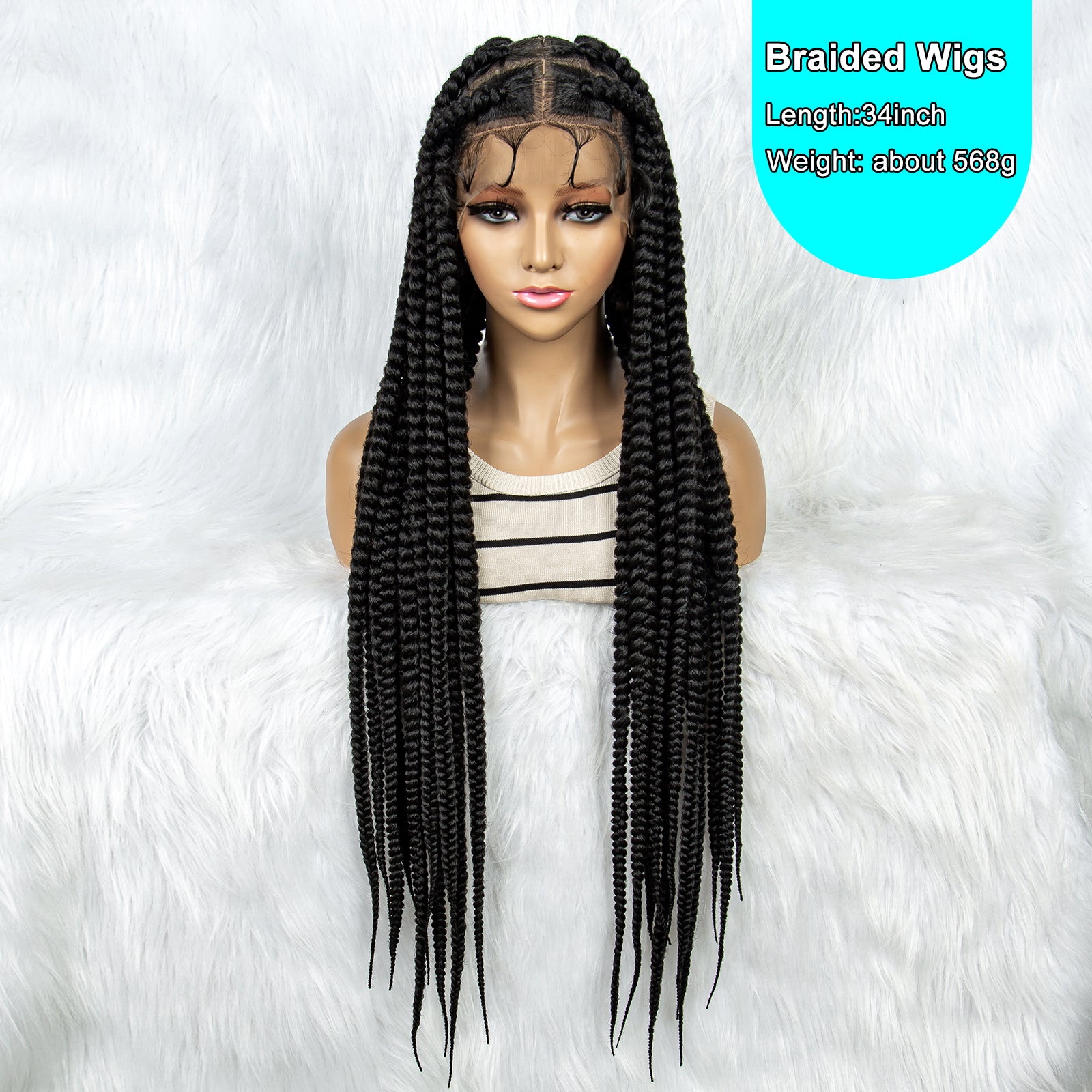 044 Synthetic Full Lace Big Knotless Box Braided Wigs for Women Lace Frontal Cornrow Braiding Wig with Baby Hair