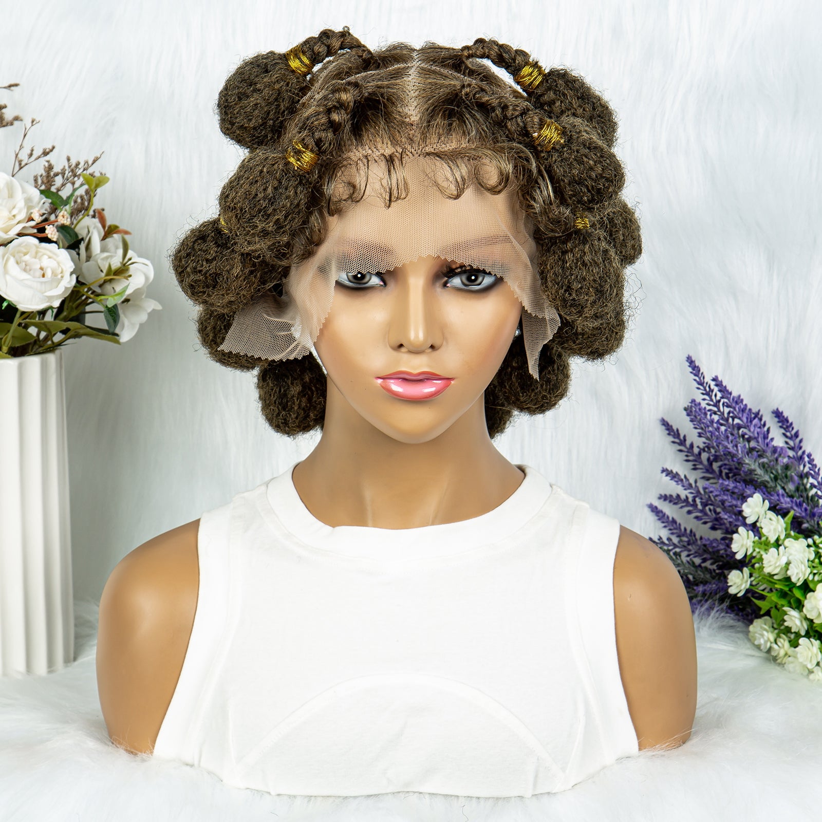 073 New Style Bantu Knot Braided Wigs Synthetic HD Full Lace Wig For Black Women Afrian Braid Braiding Hair Knotless Box Braids Wigs