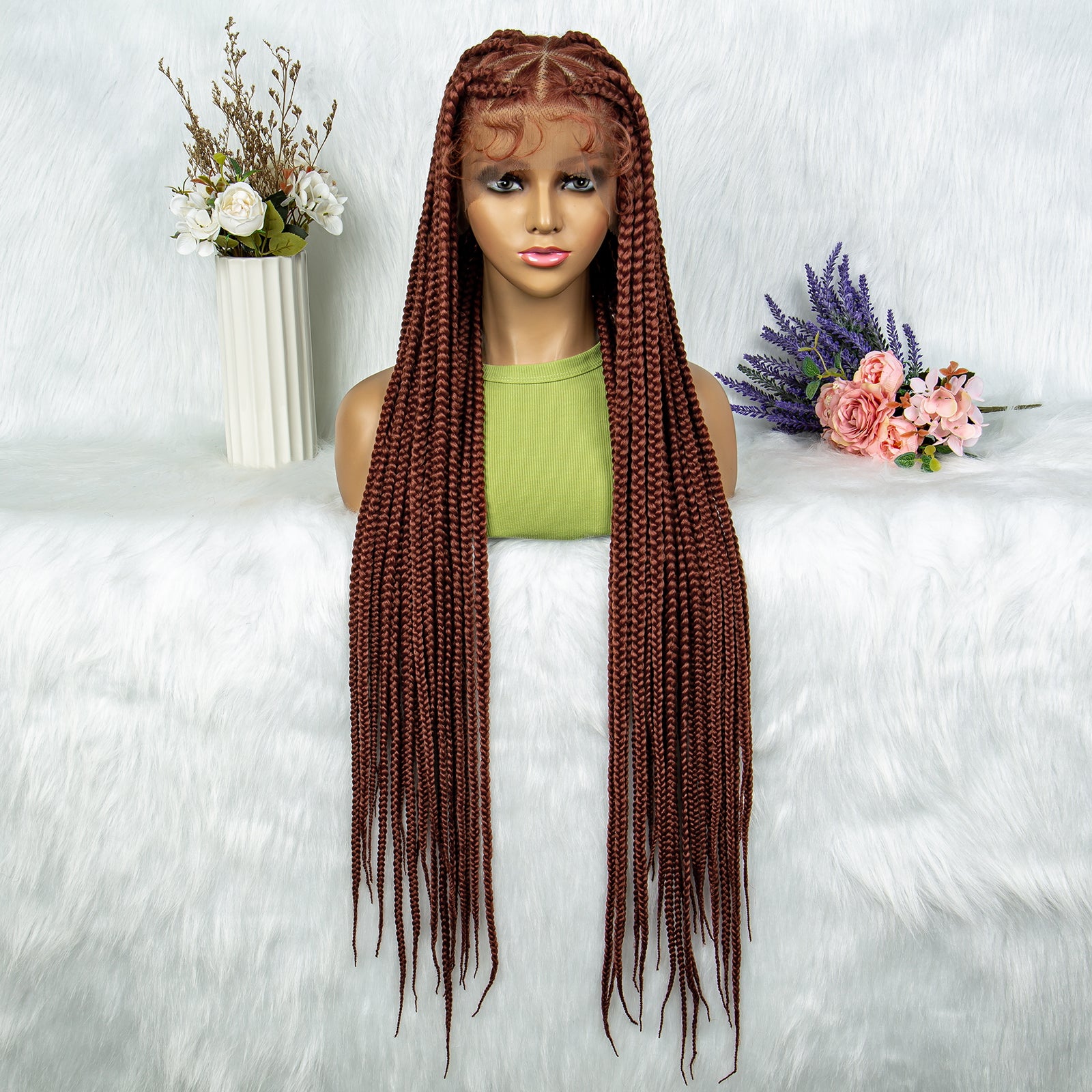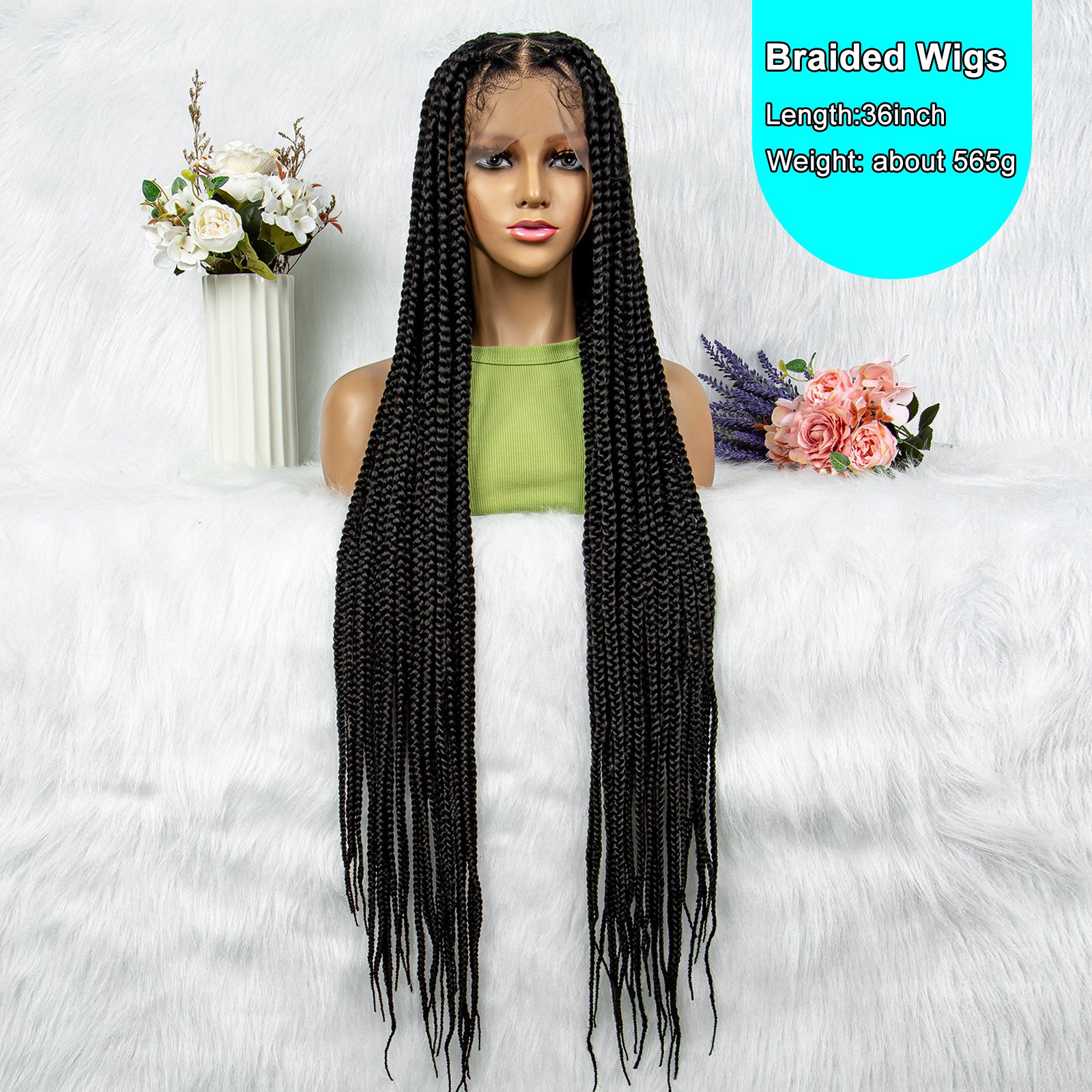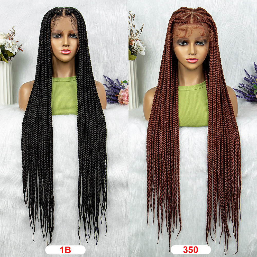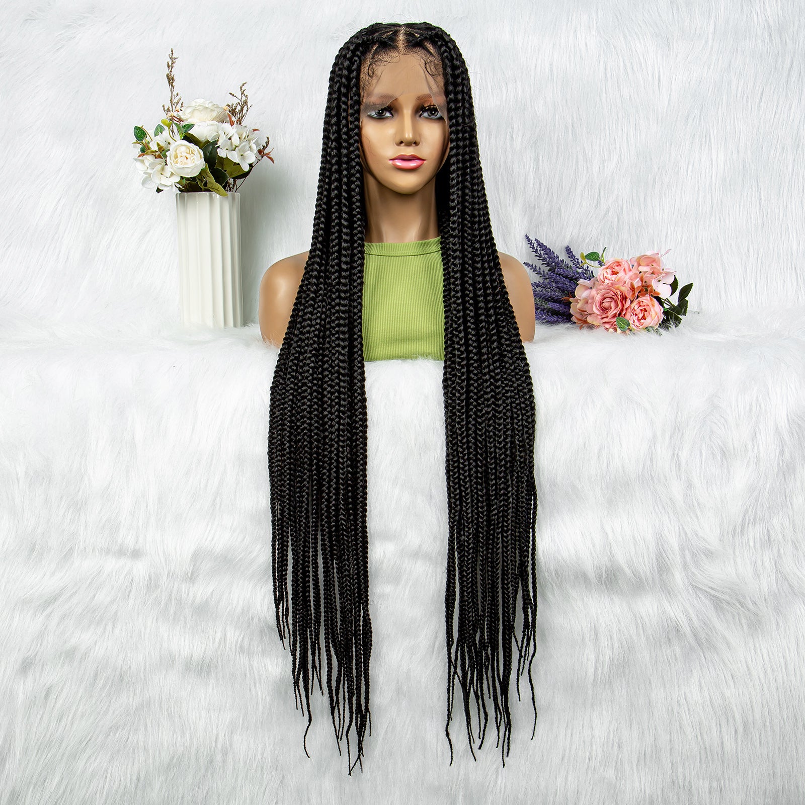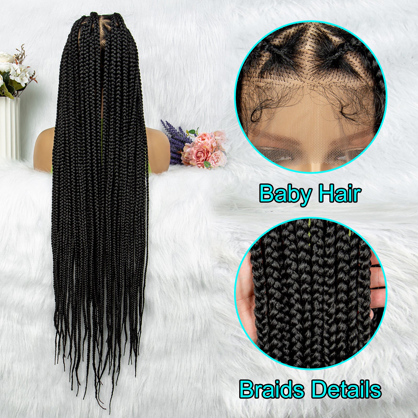 074 Synthetic Full Lace Big Knotless Box Braided Wigs for Women Lace Frontal Long Cornrow Braiding Wig with Baby Hair