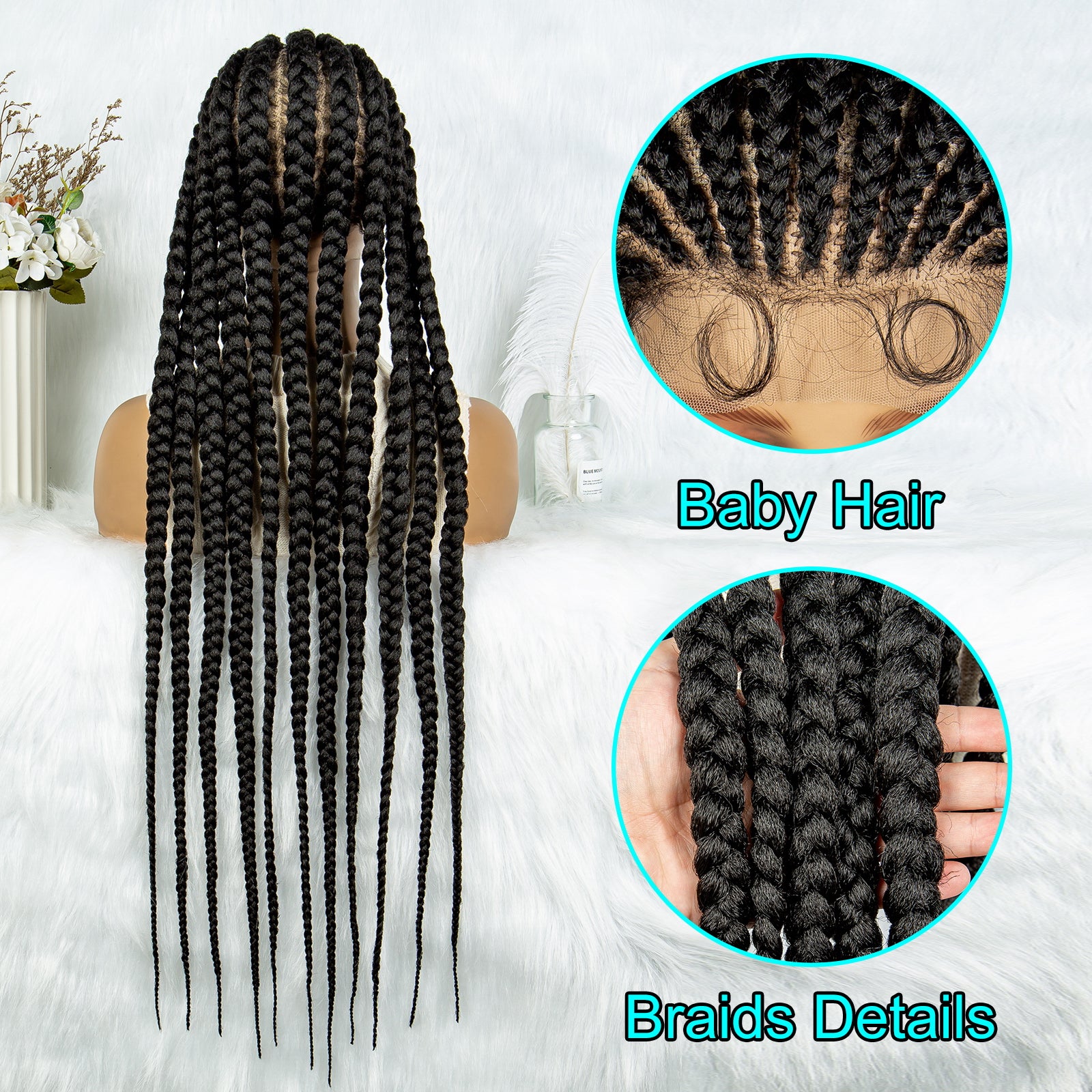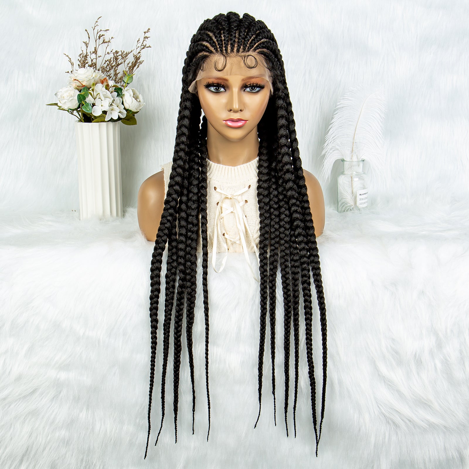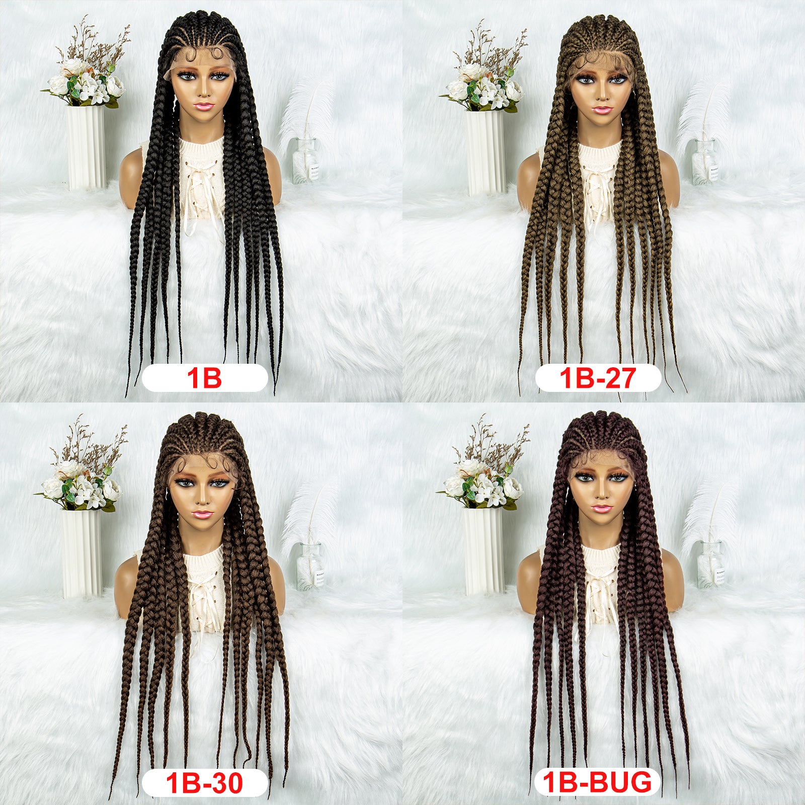 Long Braided Wigs 11 Braids 1B/27 Colored Glueless Cornrow Big Braiding Briaid Synthetic Wig Pre Plucked For Women