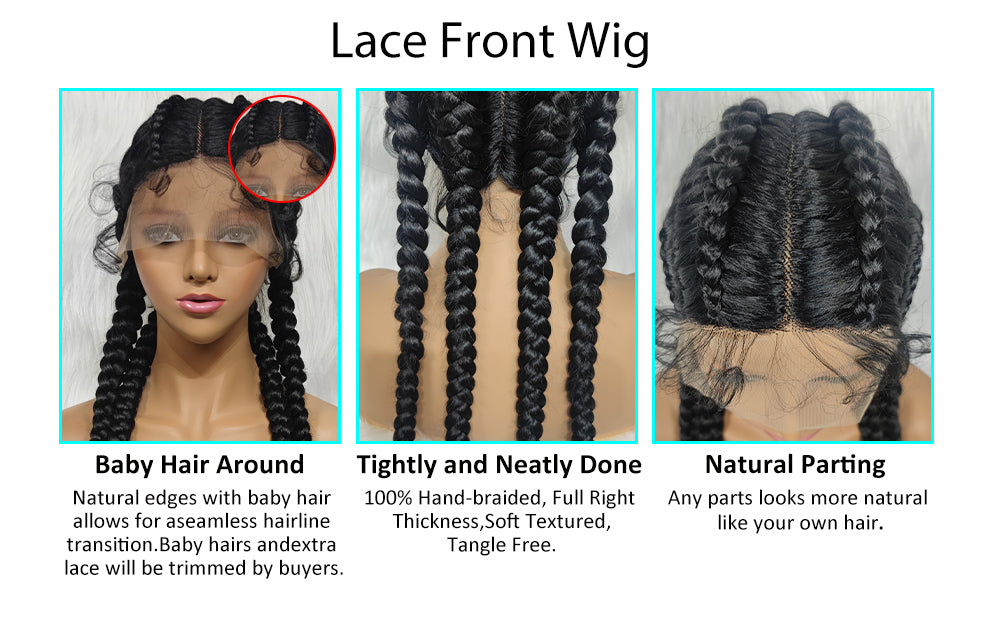 360 Lace Front Long Box Braided Wig 37 Inches Cornrow Braids Wigs 4 Braids Synthetic Knotless Box Braids Lace Front Wigs for Black Women