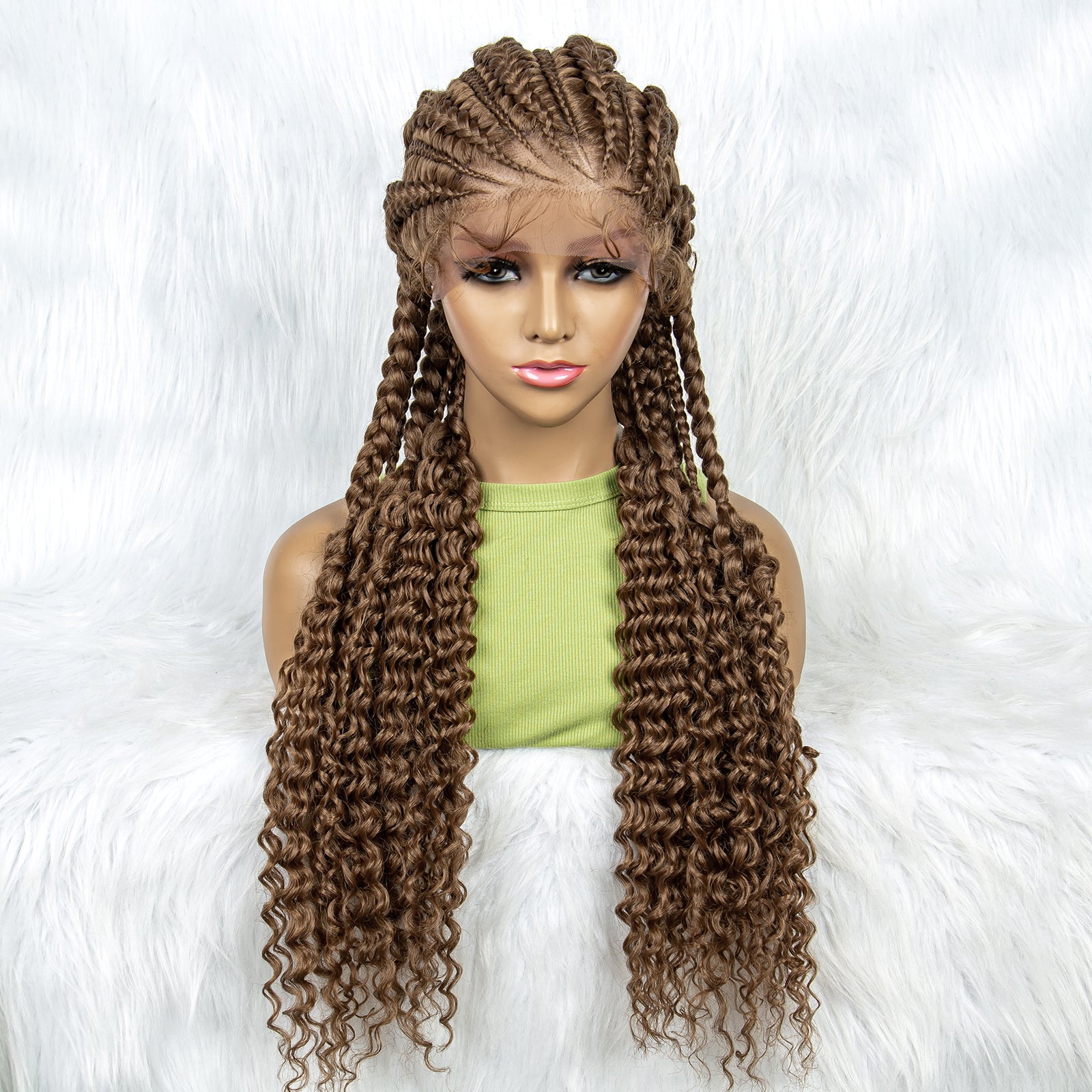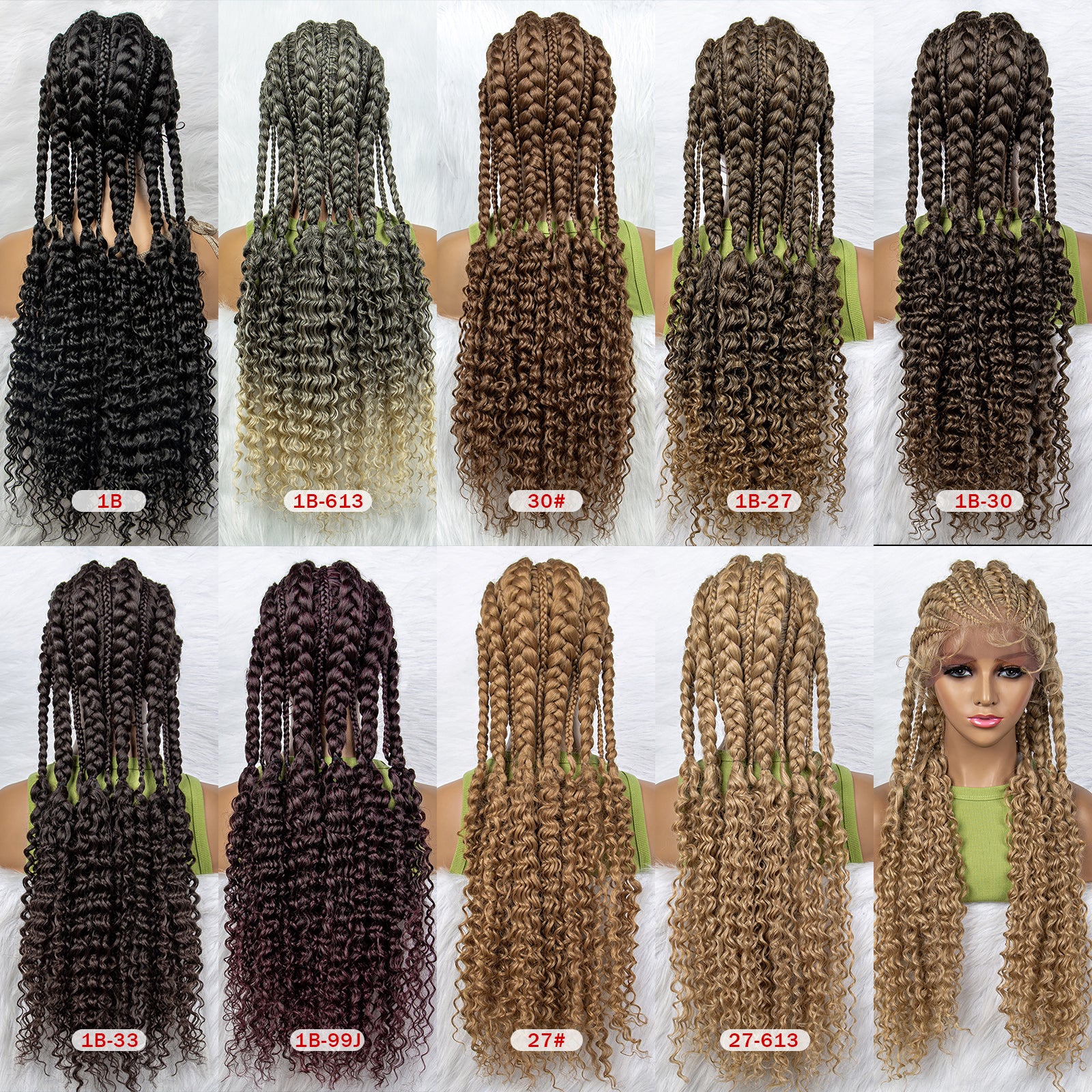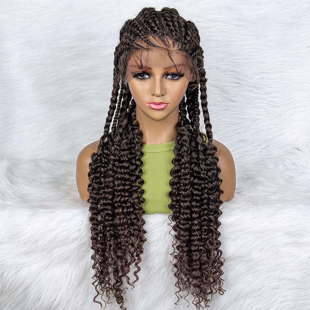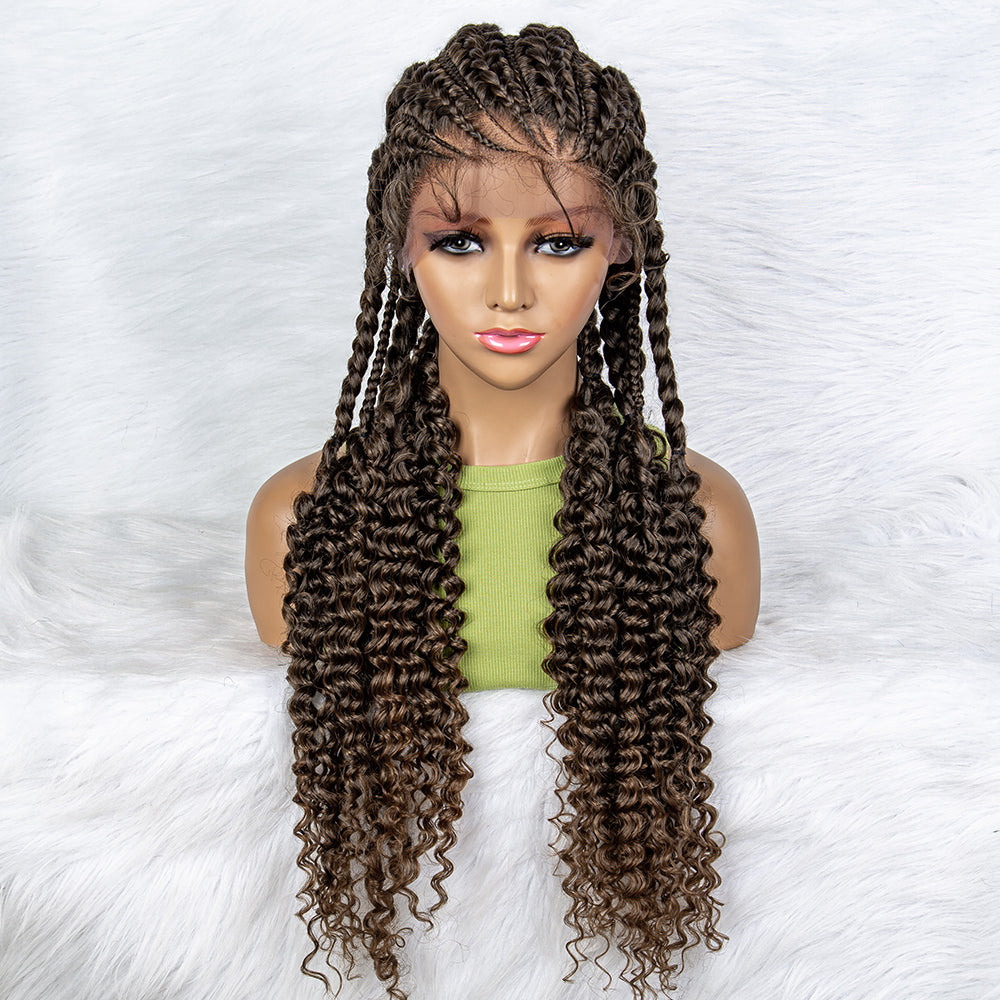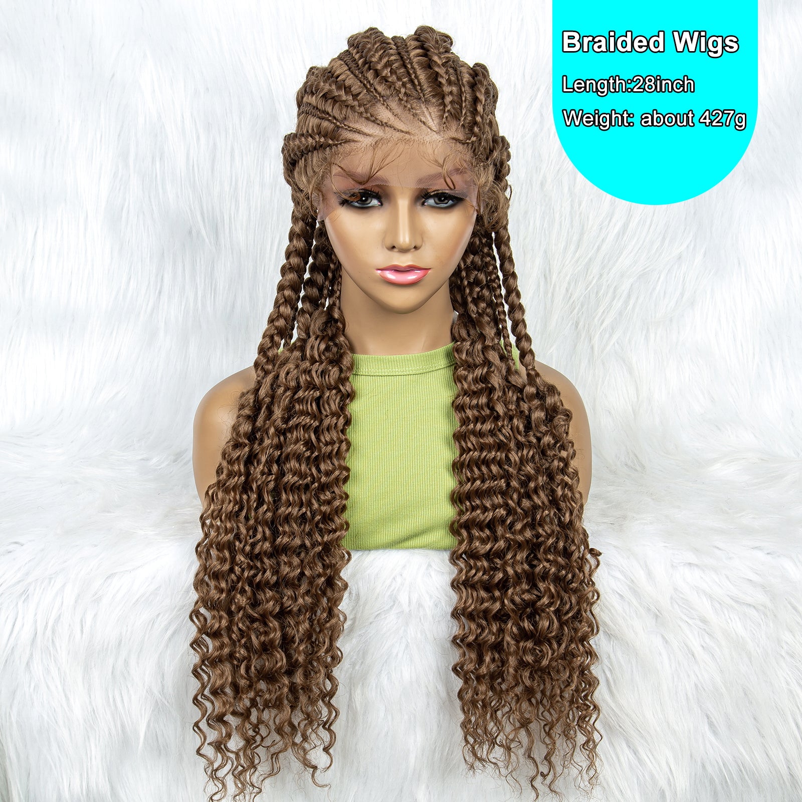 Synthetic Full Lace Braided Wigs with Curly Ends for Black Women Lace Frontal Knotless Box Braiding Hair Wig Cornrow Braids Wigs