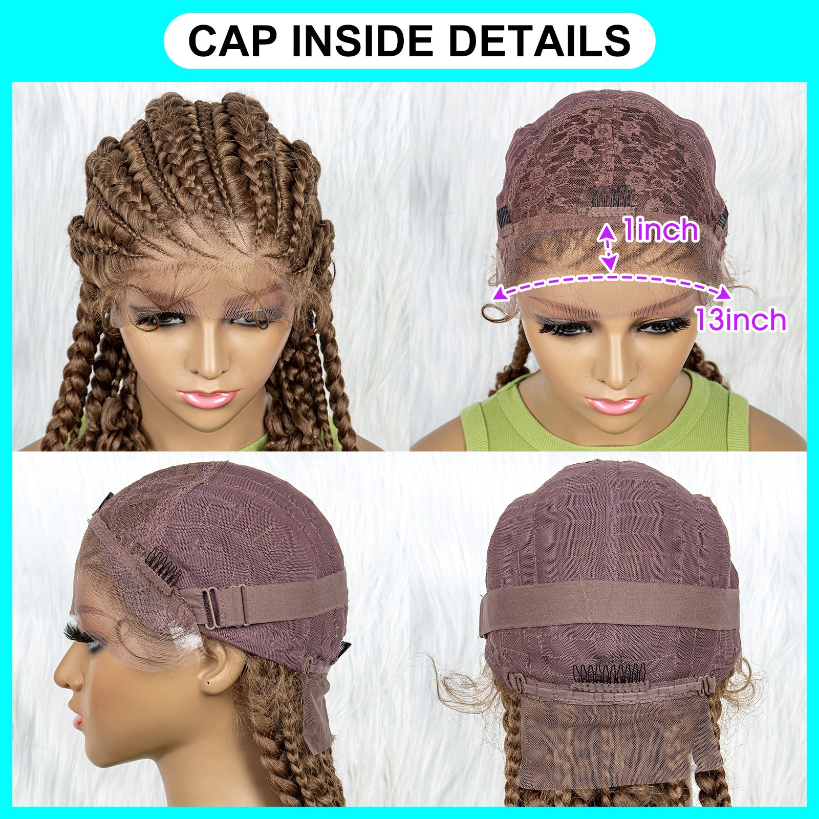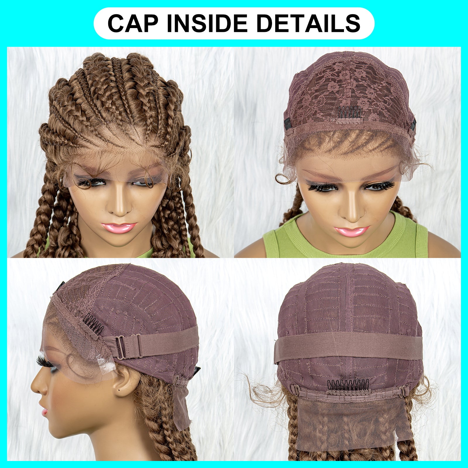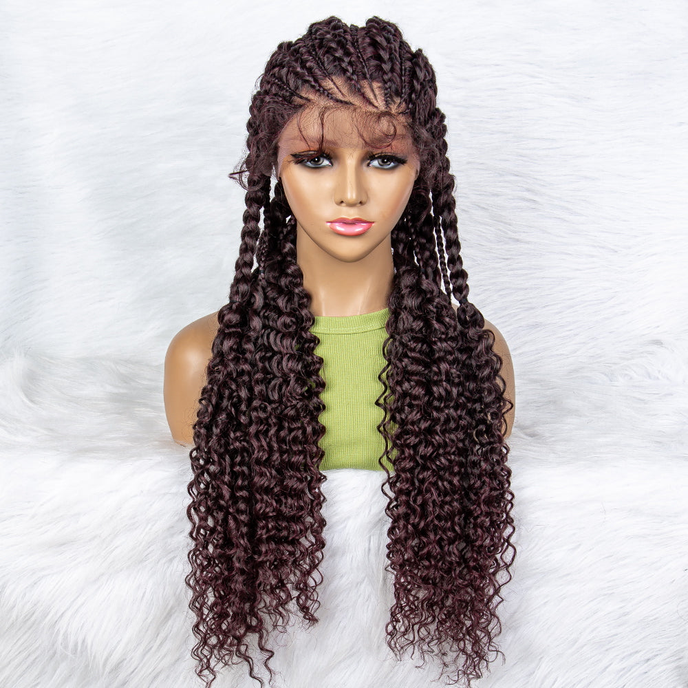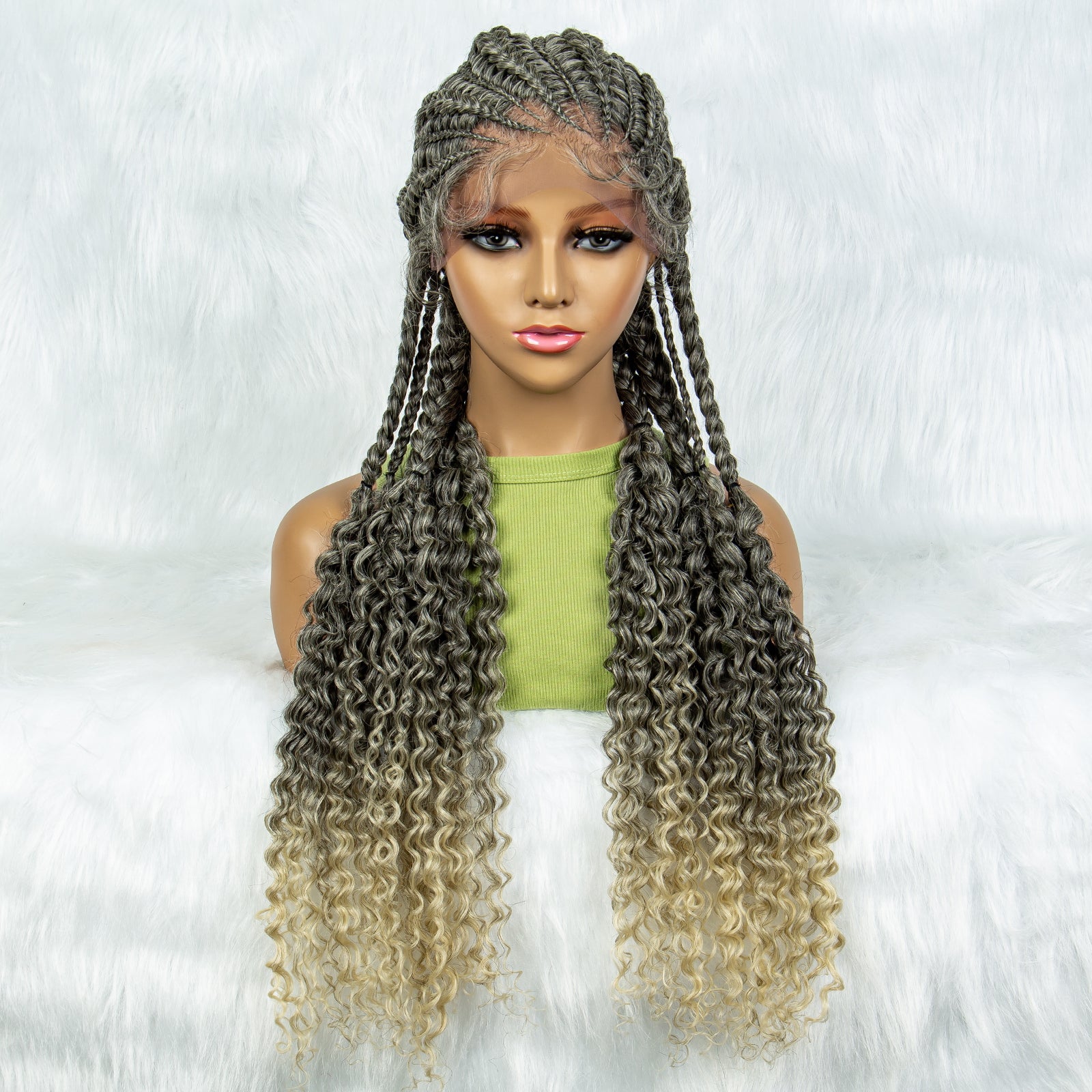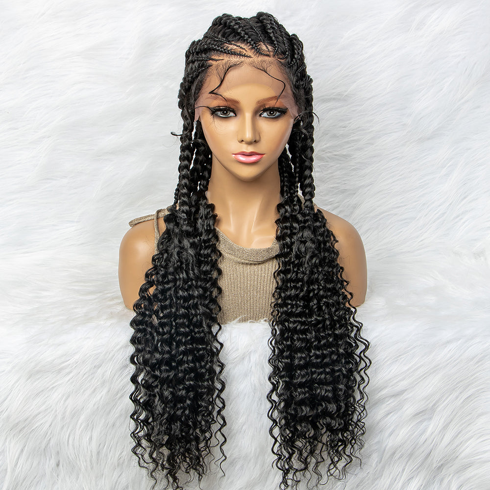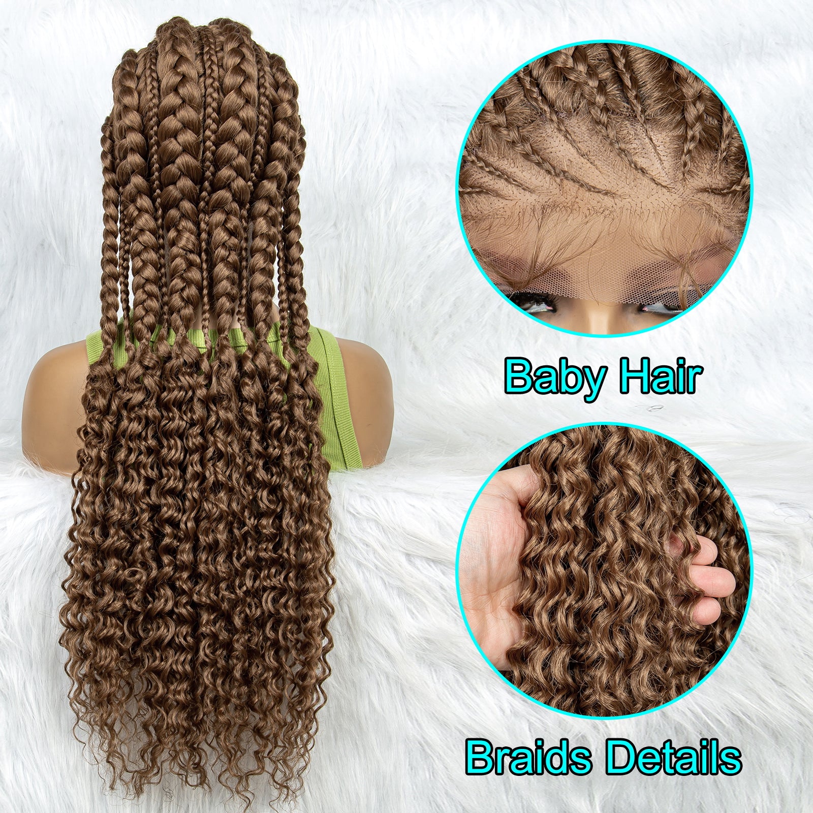 Synthetic Full Lace Braided Wigs with Curly Ends for Black Women Lace Frontal Knotless Box Braiding Hair Wig Cornrow Braids Wigs
