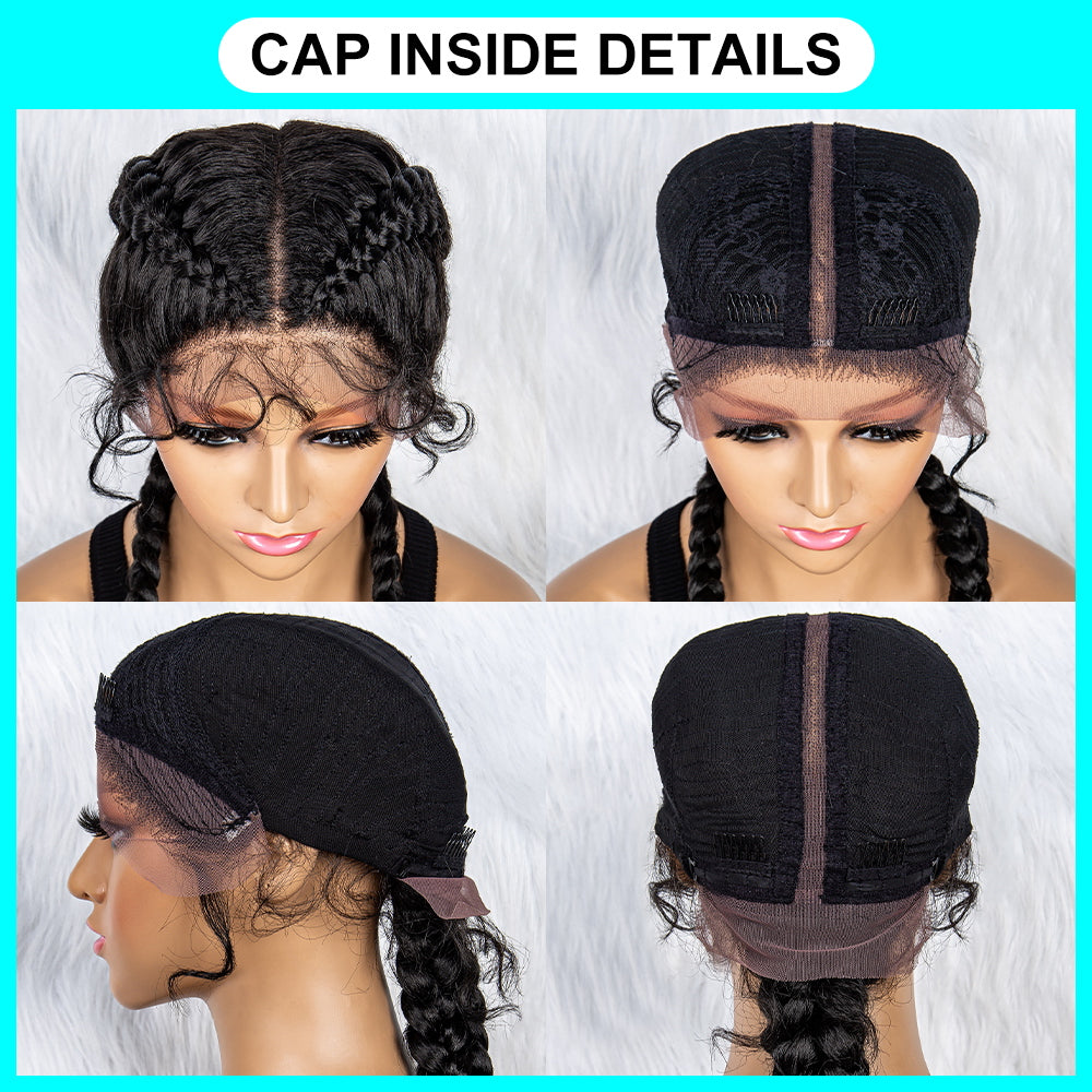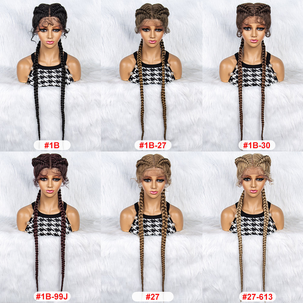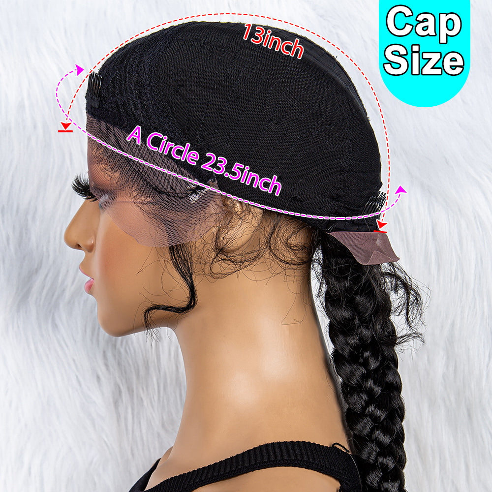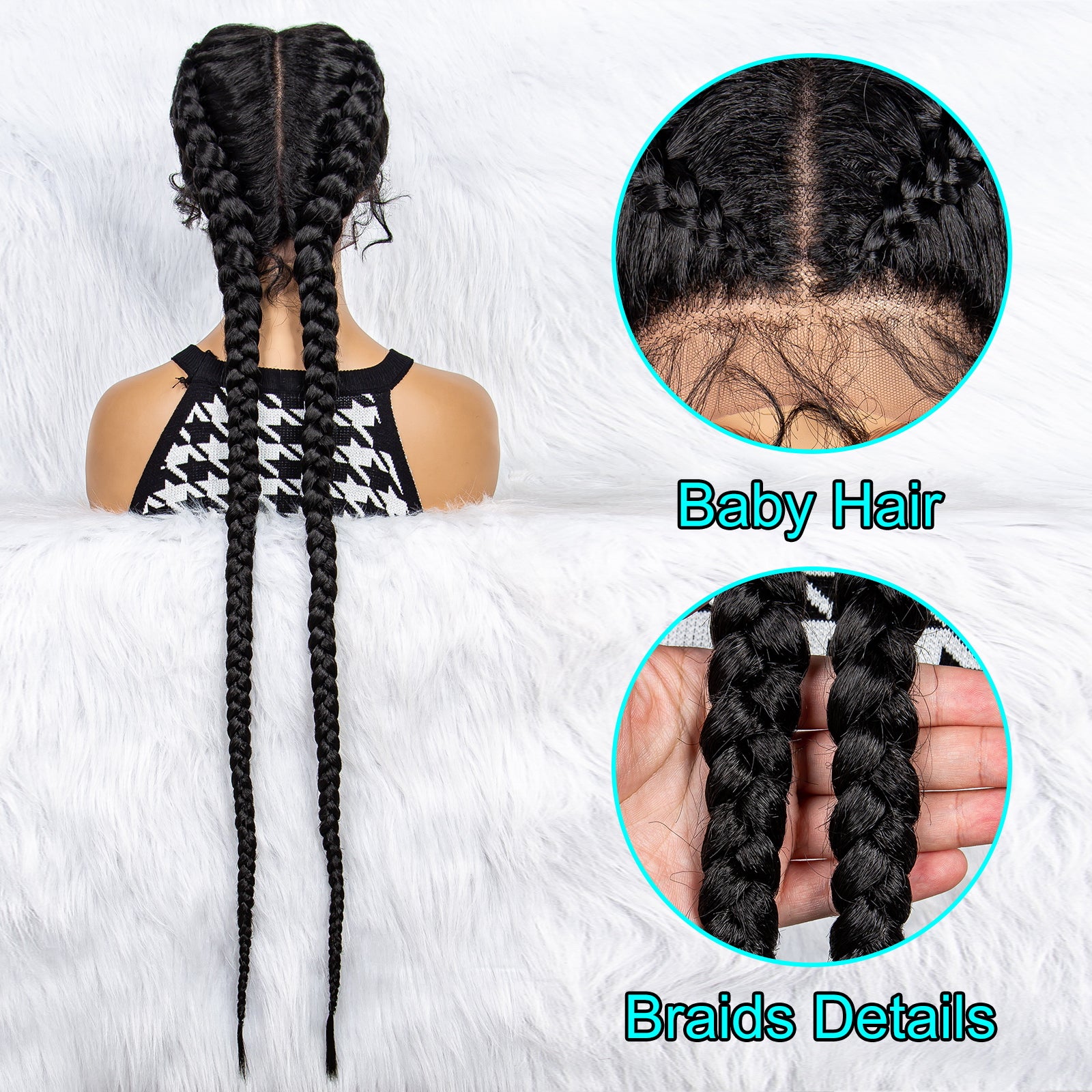 36 Inches Long Box Braids Lace Frontal Wig African Synthetic 2 Braids Wig with Baby Hair for Afro France Women Box Braid Wig