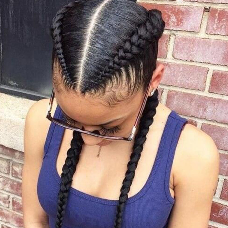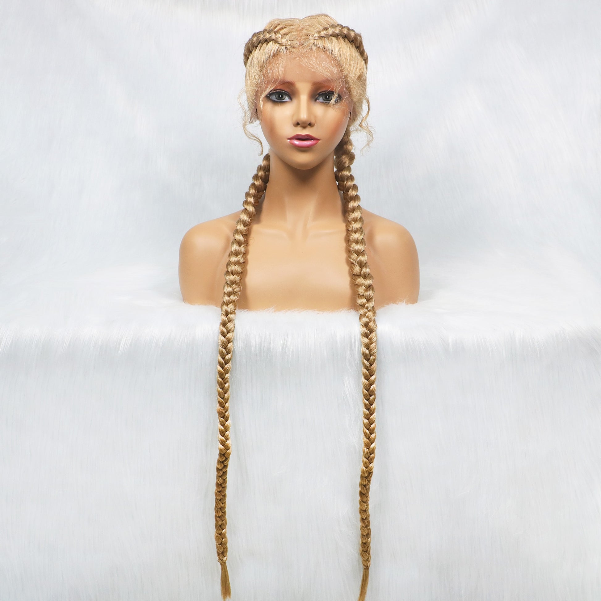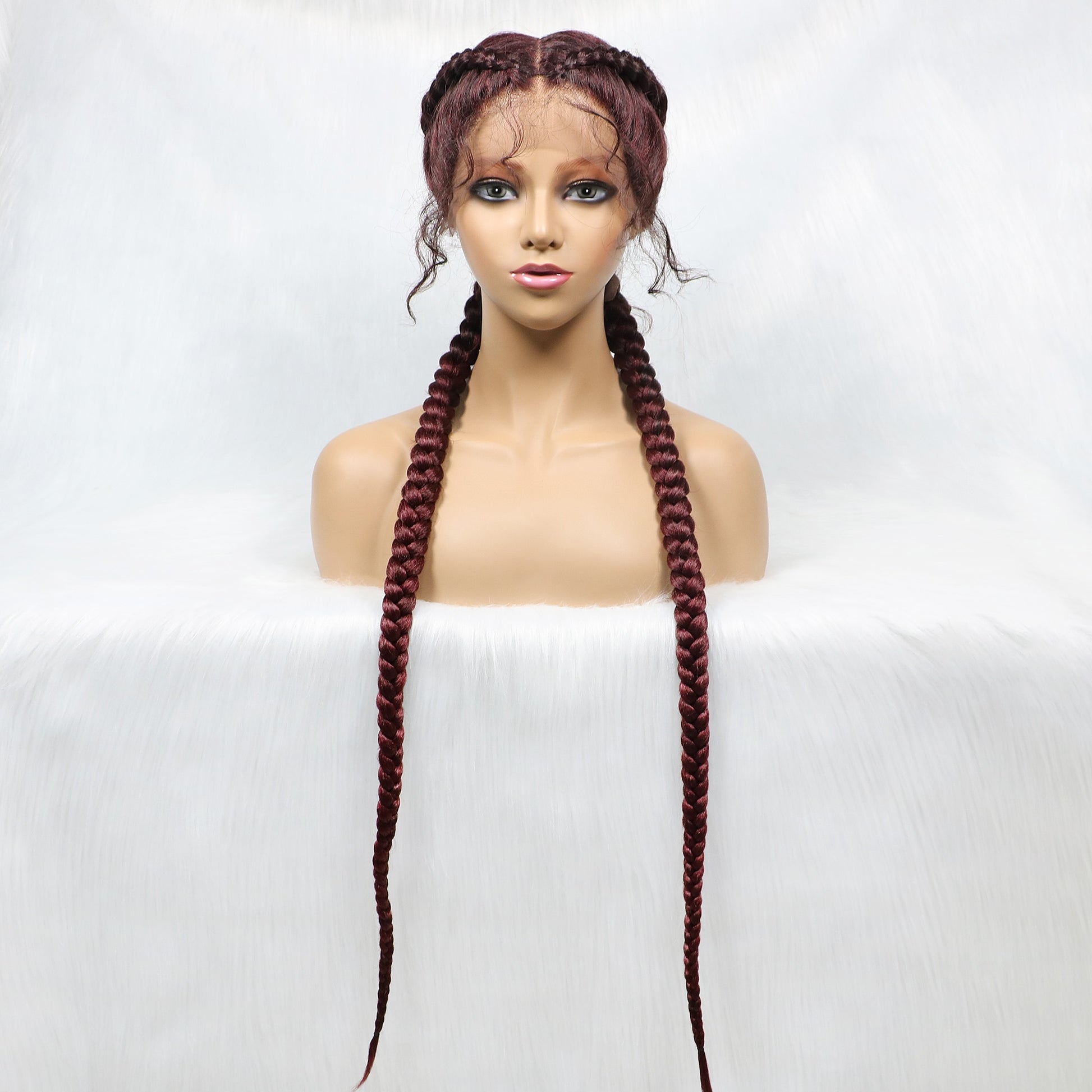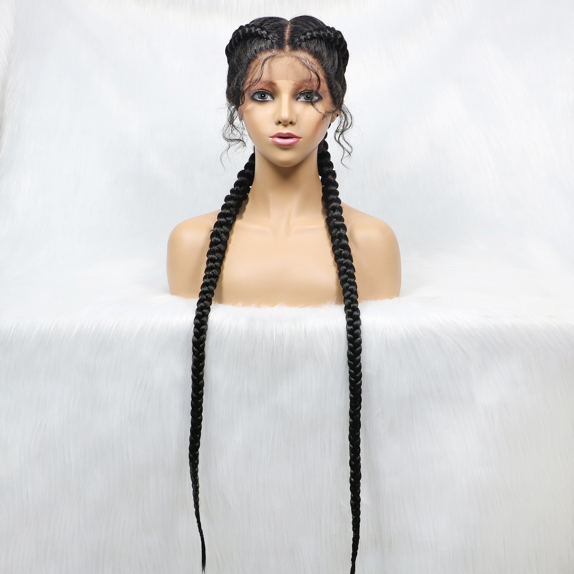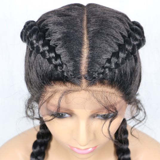 Malaika Lace Wigs two Braids Wigs Natural black Wig free shipping lace braid style