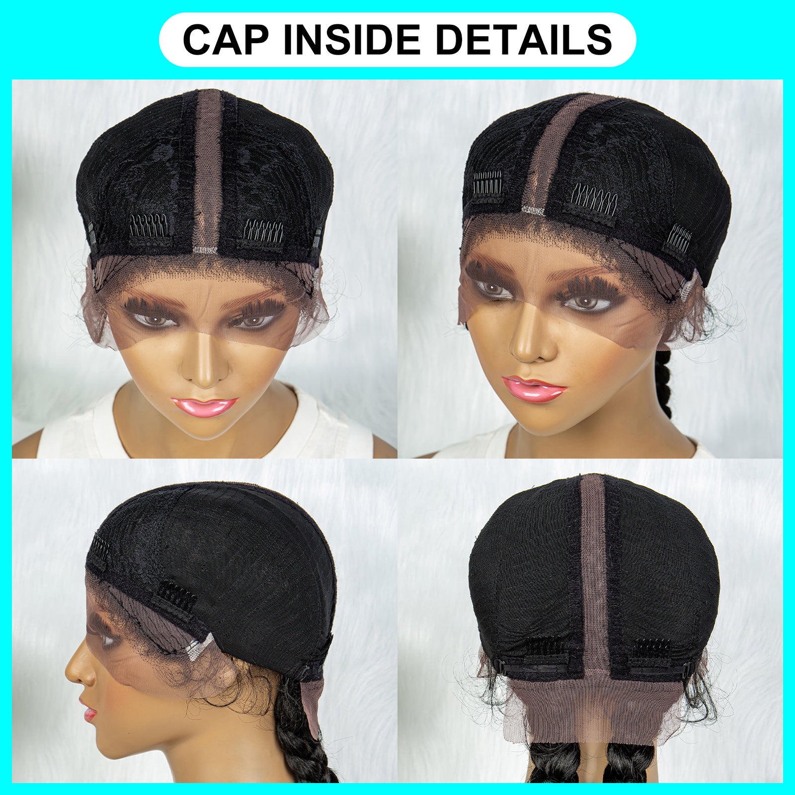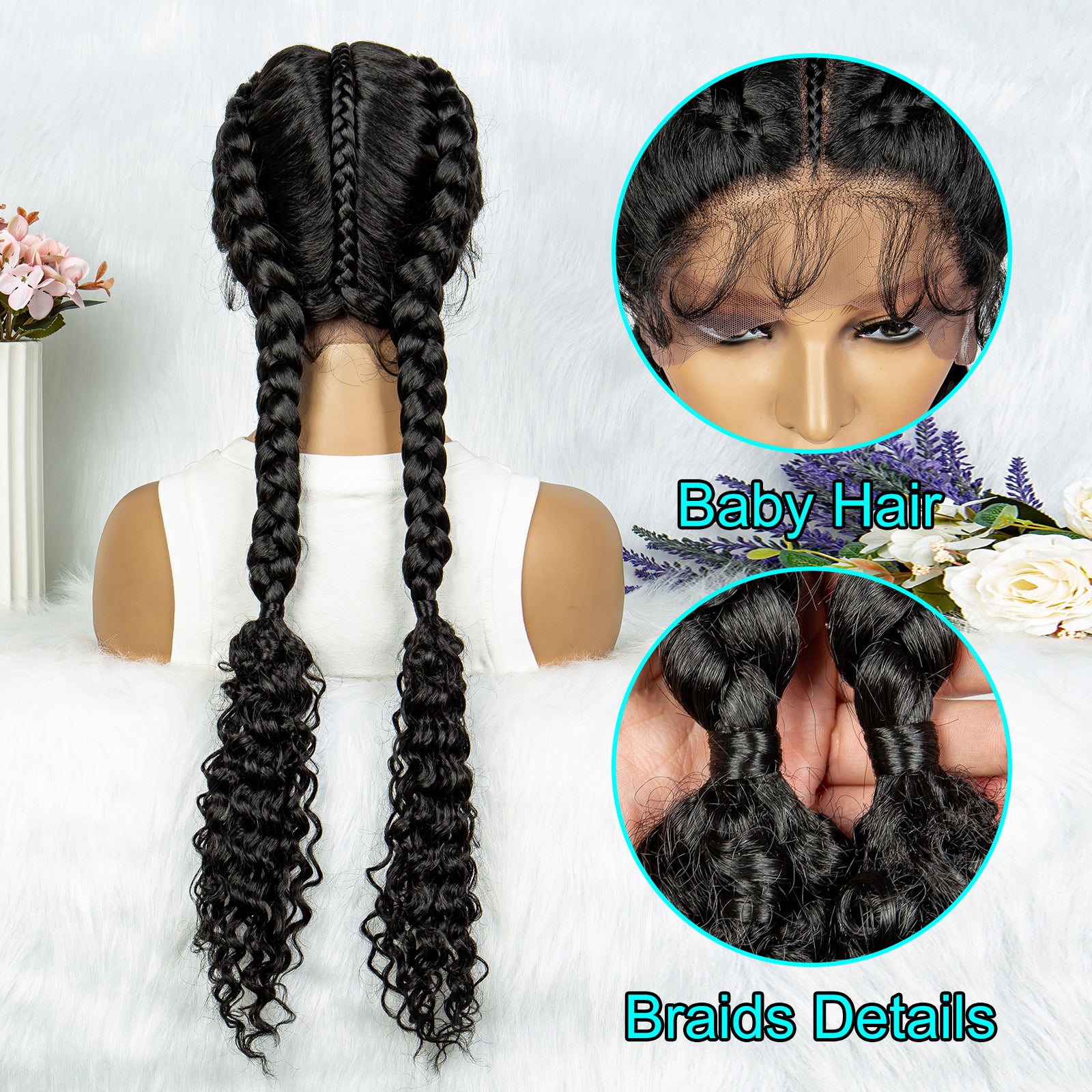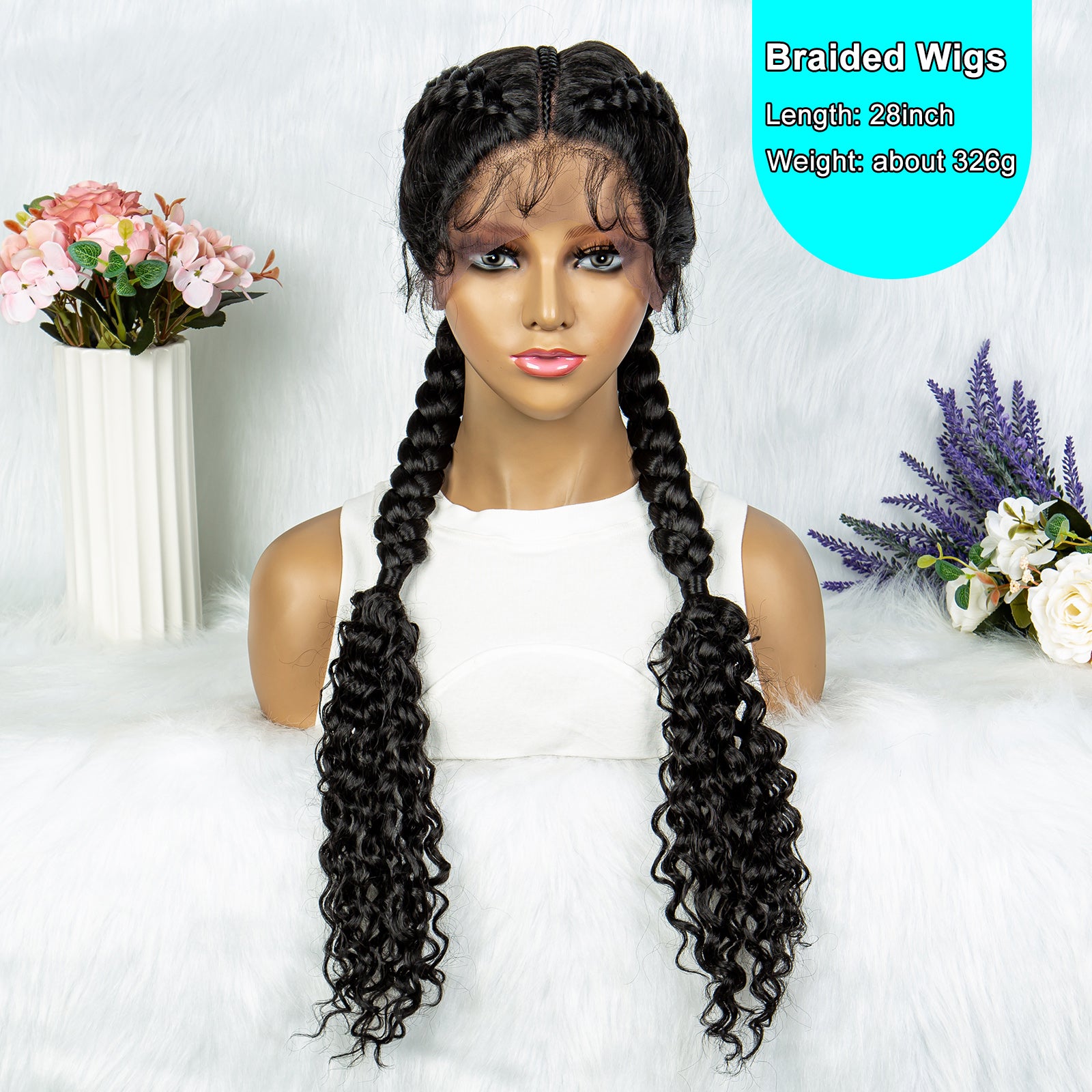Box Braids Lace Frontal Wig African Synthetic 3 Braid Wig with Baby Hair for Afro France Women Curly Ends Braid Wig