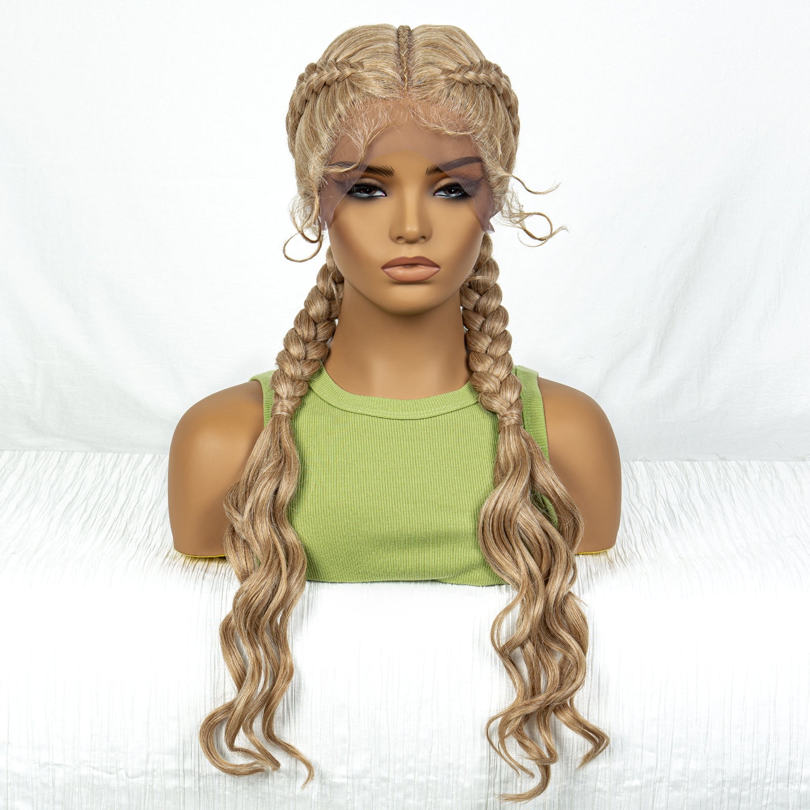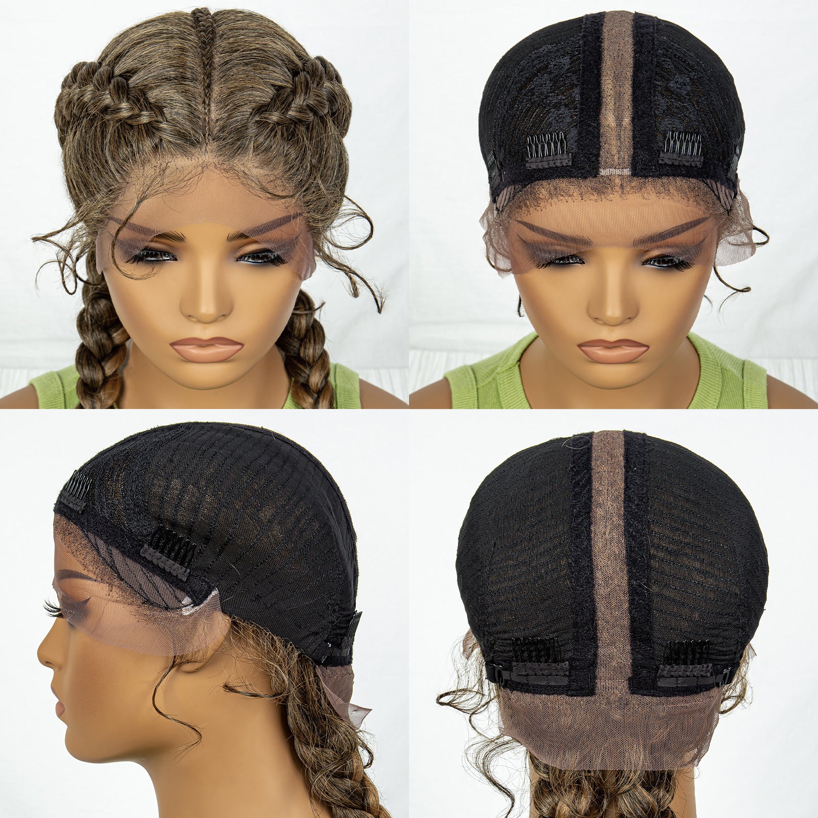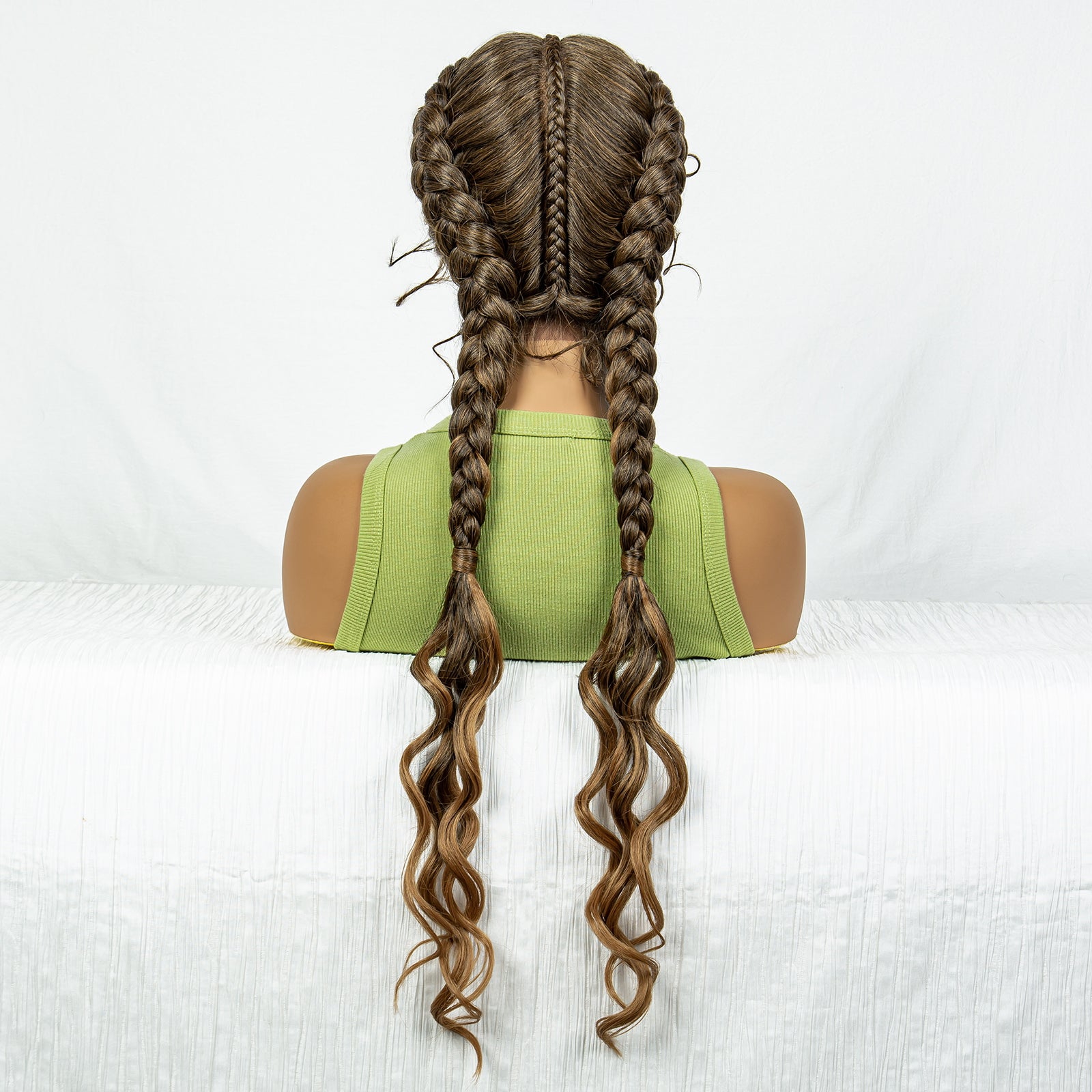 30 Inches Curly Ends Box Braids Lace Frontal Wig African Synthetic 3 Braid Wig with Baby Hair for Afro France Women Box Braid Wig