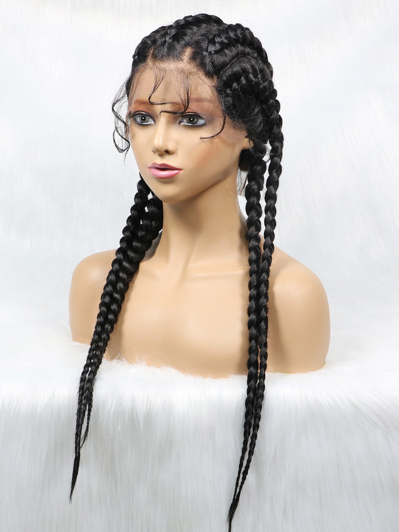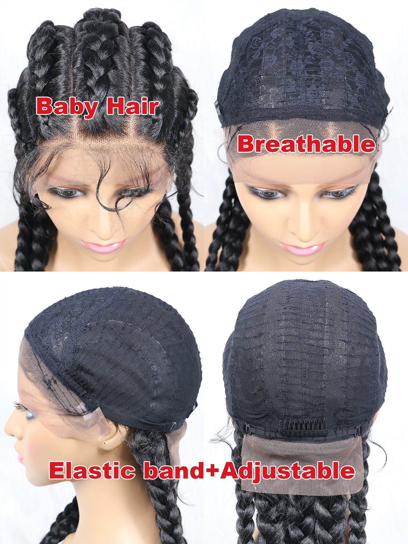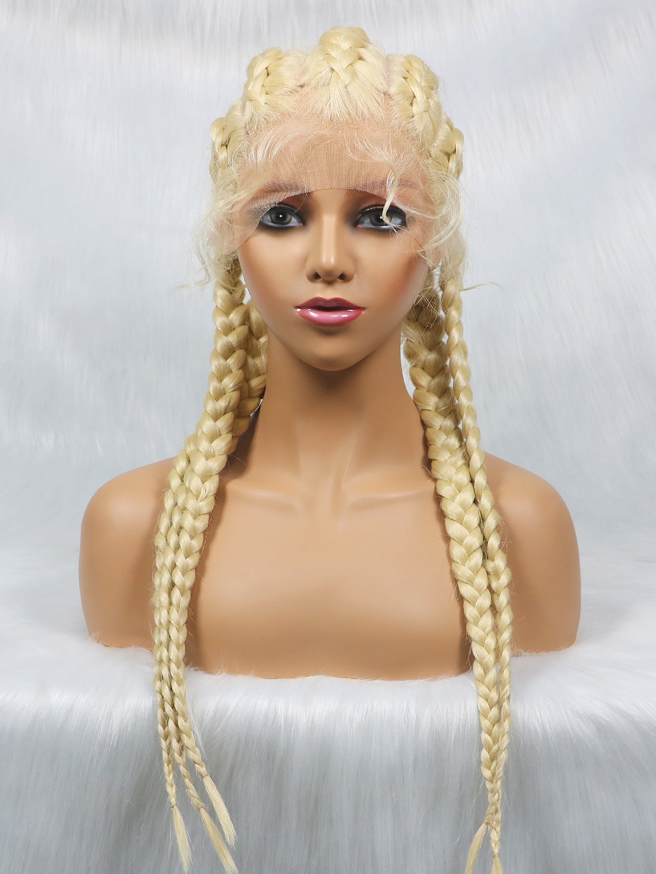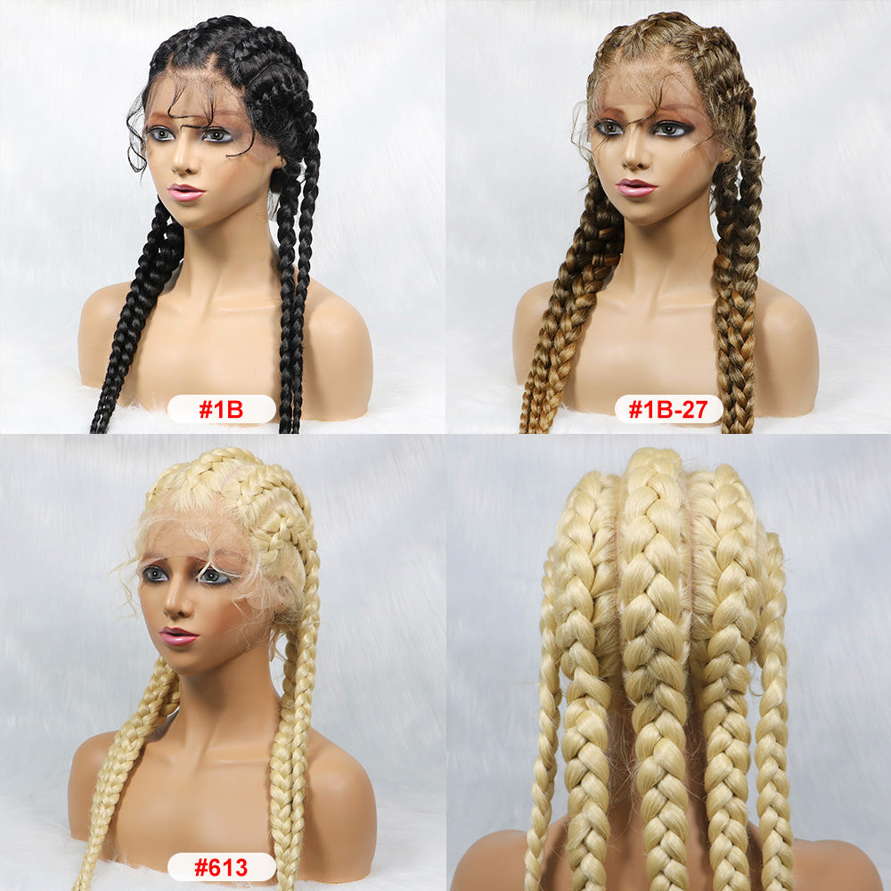 613 Colored Wig Full Lace Long Box Braided Wig Cornrow Braids Lace Wigs 5 Braids Synthetic 360 Knotless Box Braids Lace Front Wigs with Baby Hair for Black Women