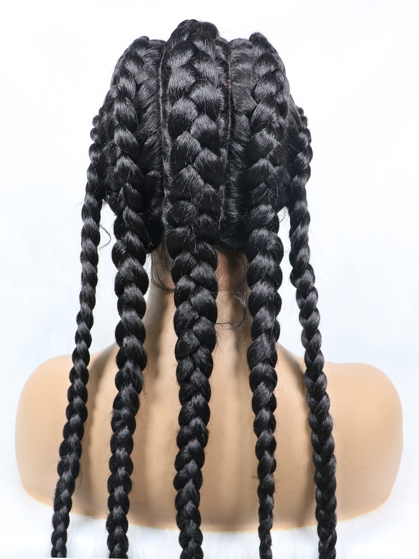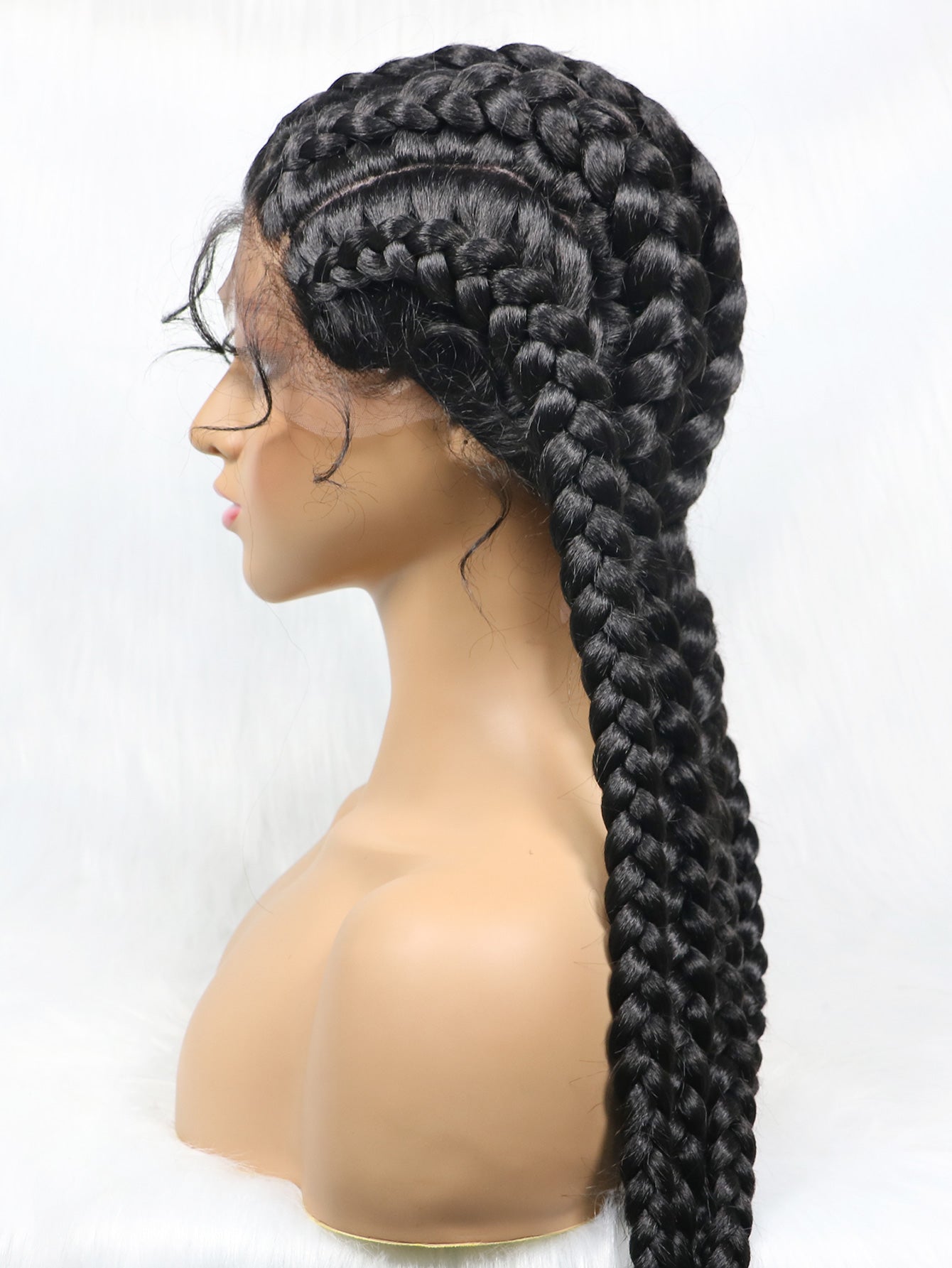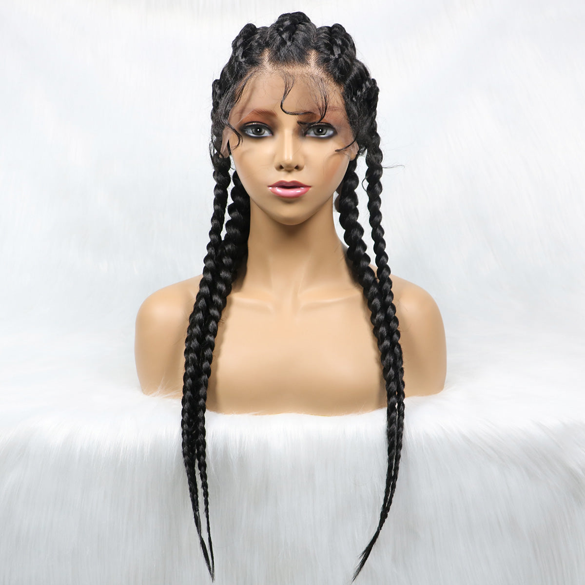 613 Colored Wig Full Lace Long Box Braided Wig Cornrow Braids Lace Wigs 5 Braids Synthetic 360 Knotless Box Braids Lace Front Wigs with Baby Hair for Black Women