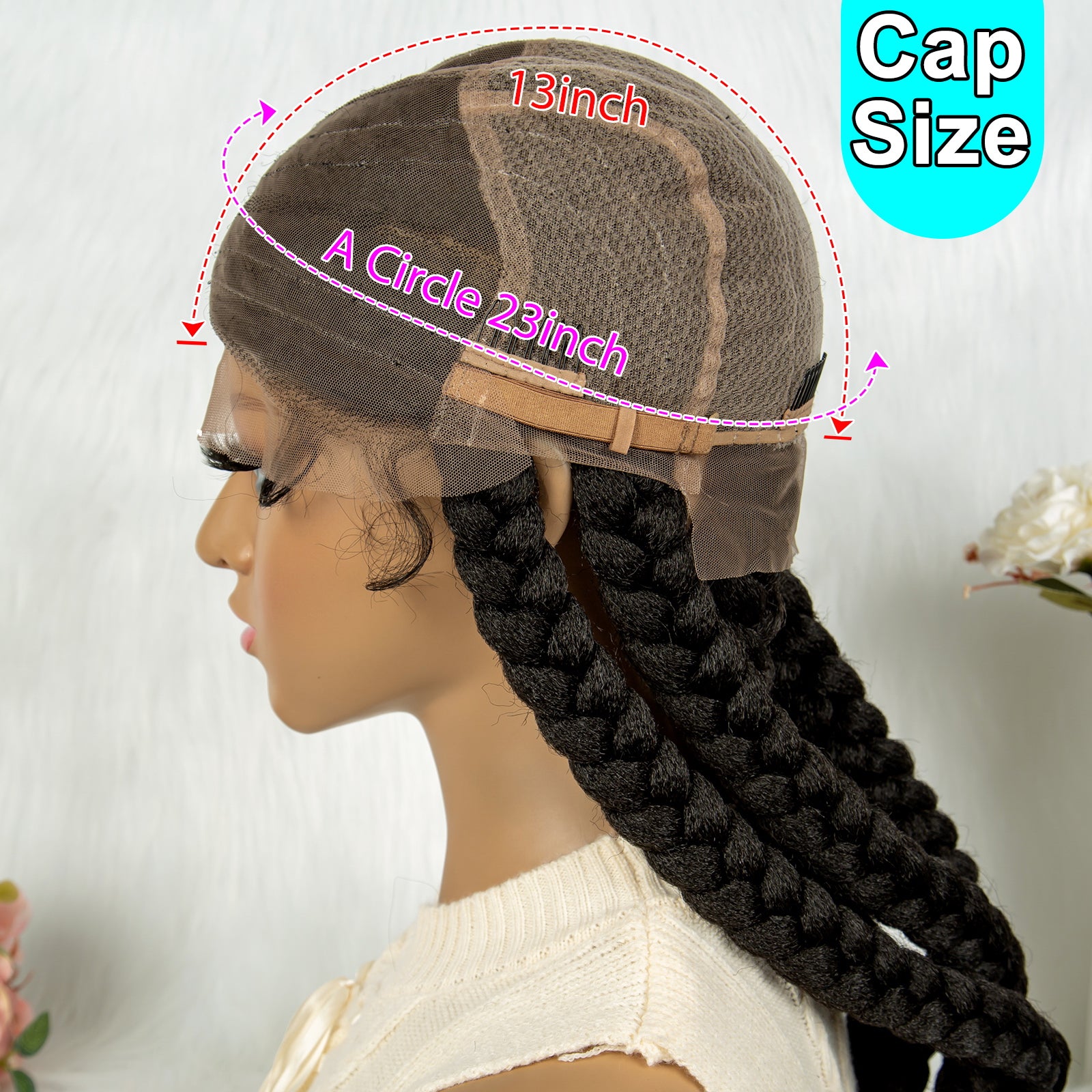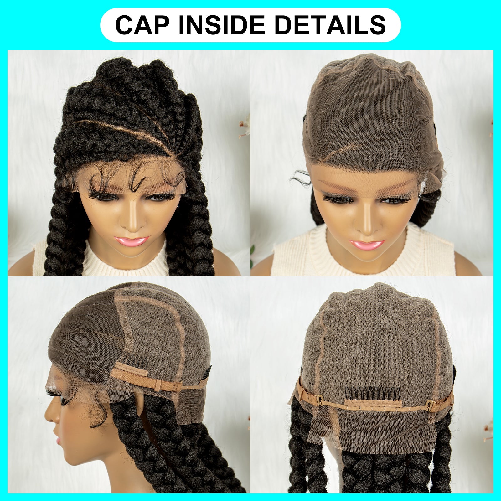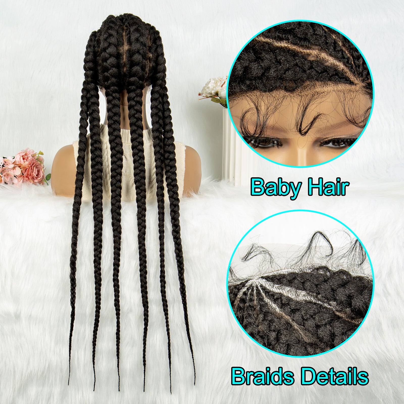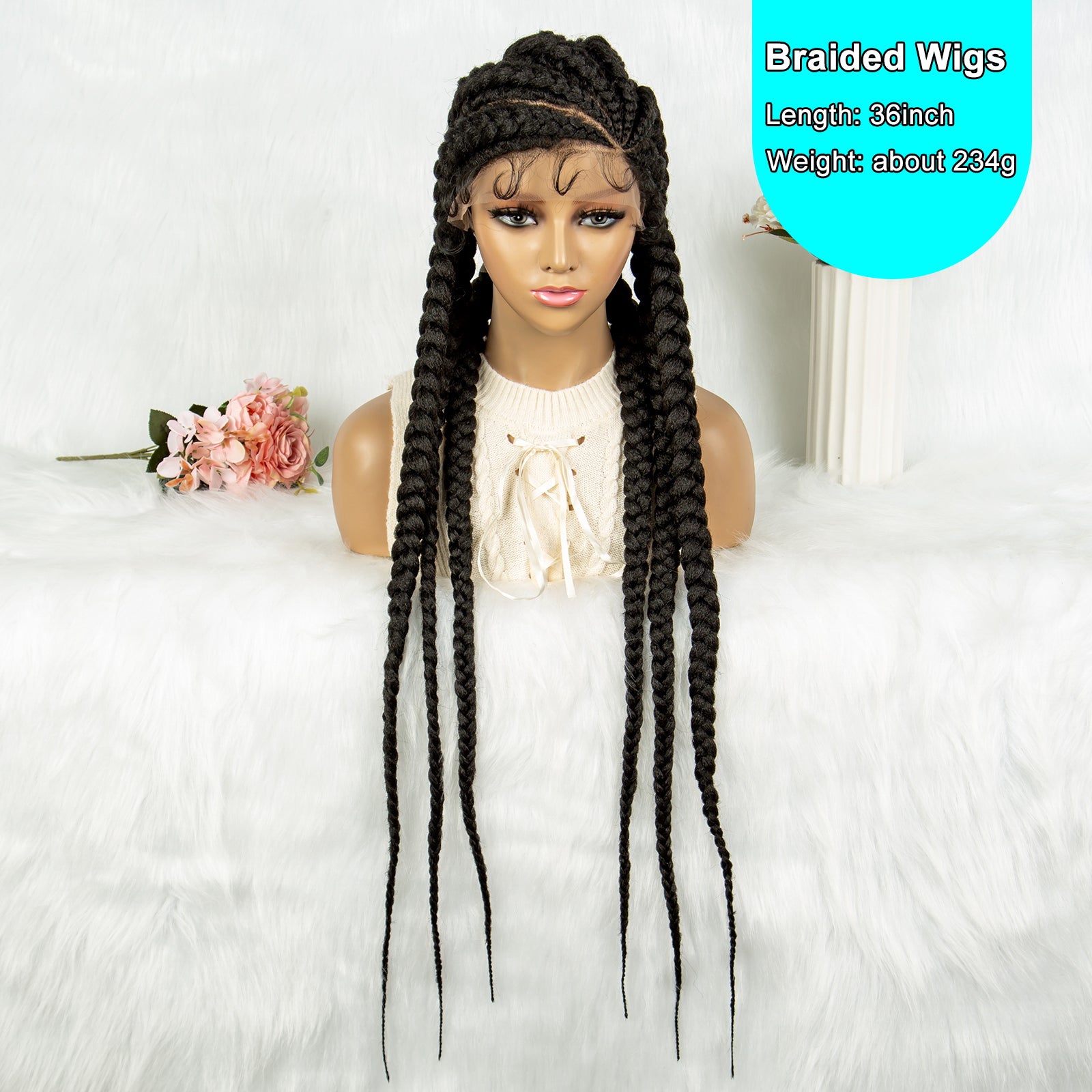 Long Braided Wigs 6 Braids Natural Colored Glueless Cornrow Big Braiding Briaid Synthetic Wig Pre Plucked For Women