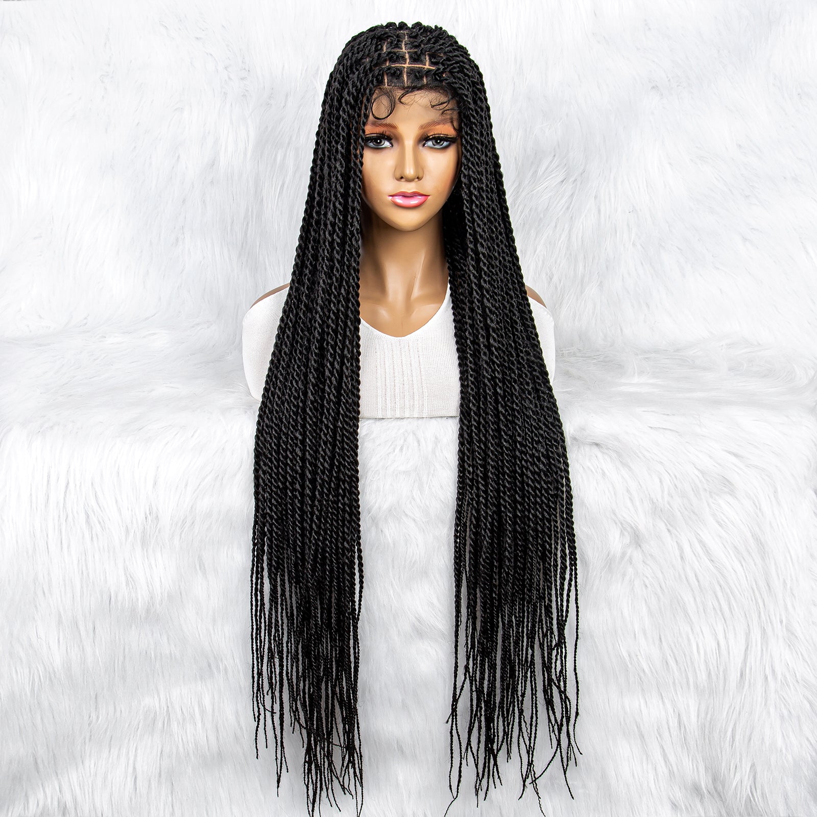 40Inches Full Lace Synthetic Wigs Long Synthetic Braided Wigs Box Braided Wigs Cornrow Wig for Black Women Long Braided Wig Fake Scalp Heat Resistant Fiber Micro Braided Wigs