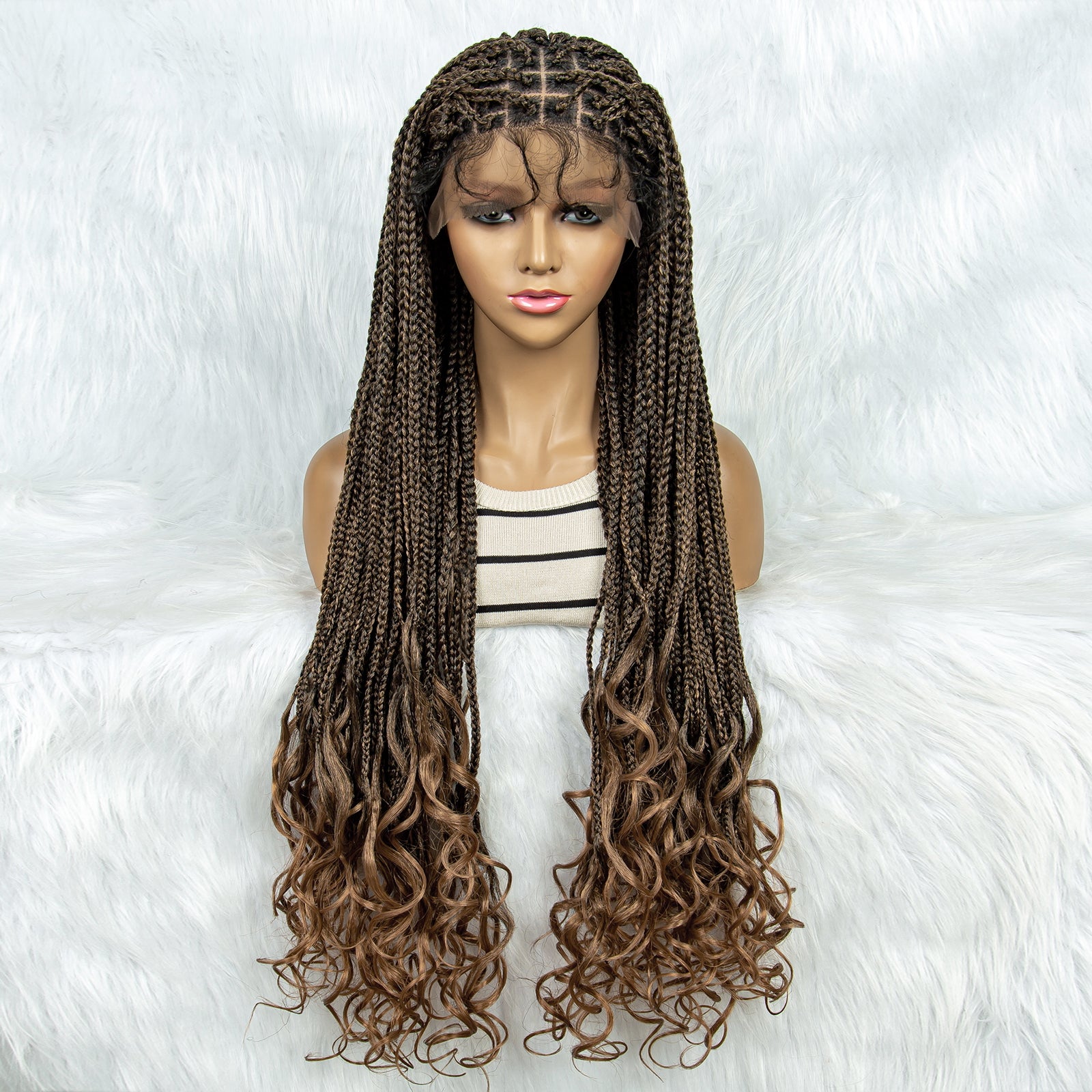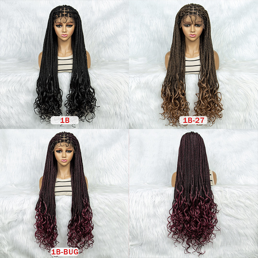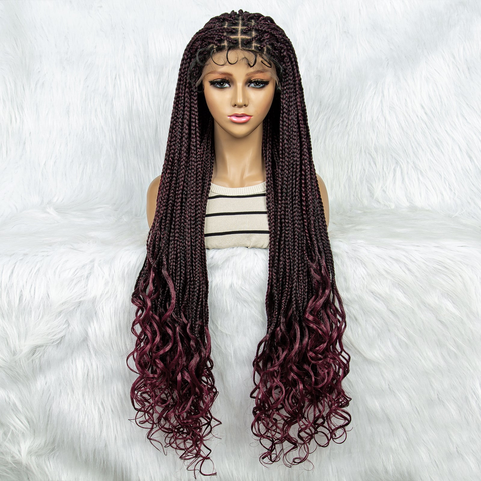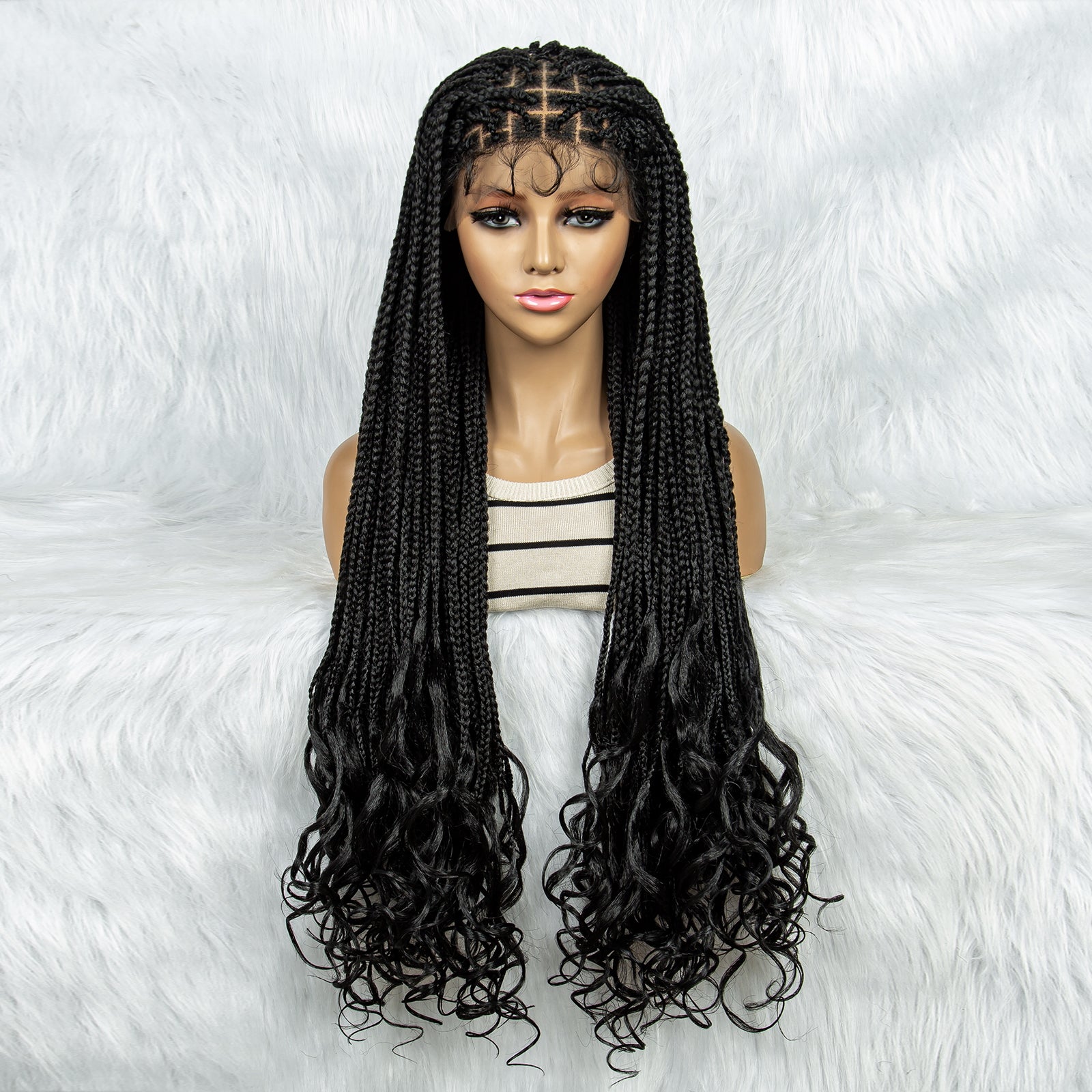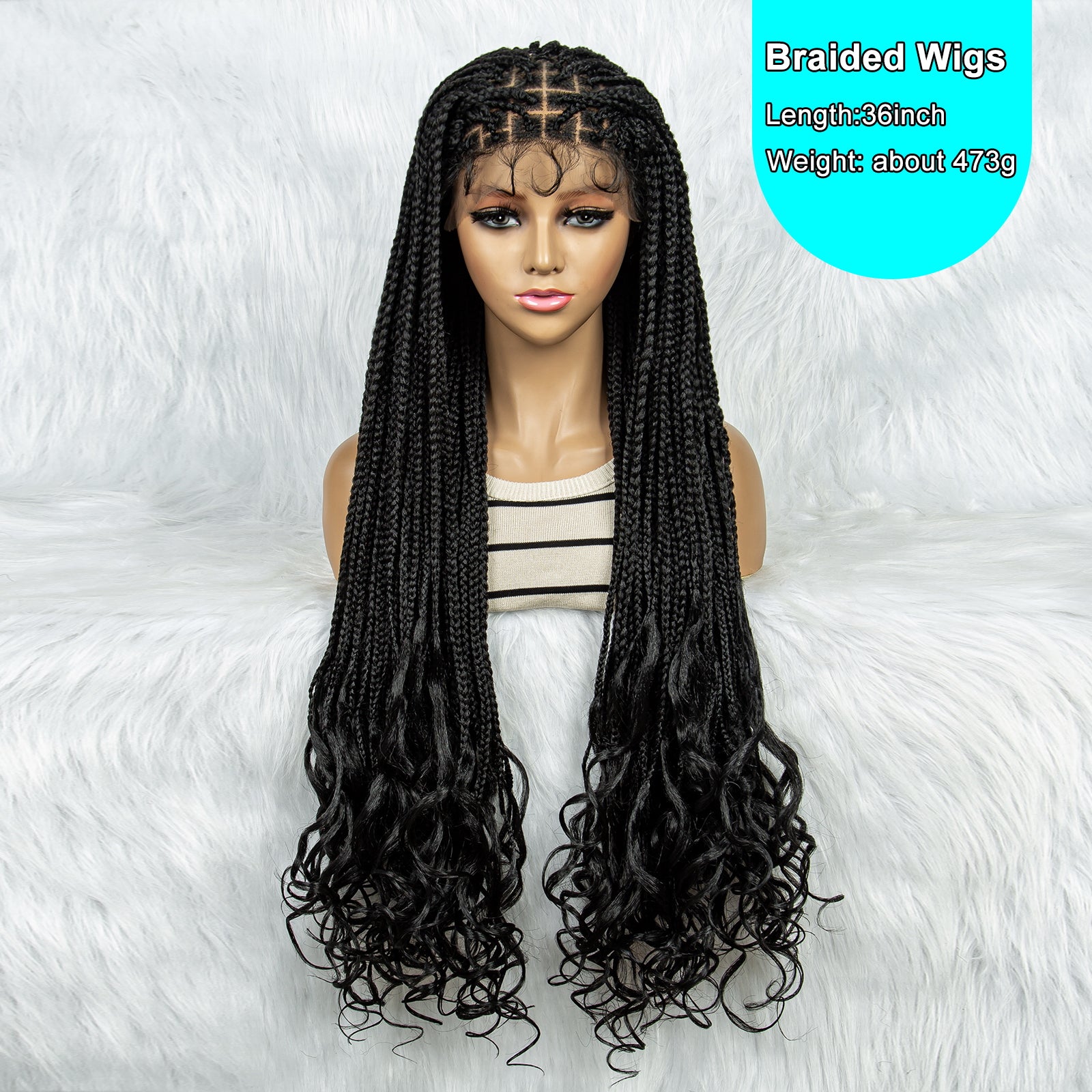 32Inches Synthetic Long Braided Wigs for Black Women Lace Front Wigs Cornrow Braids Wigs with Baby Hair African Daily Wear