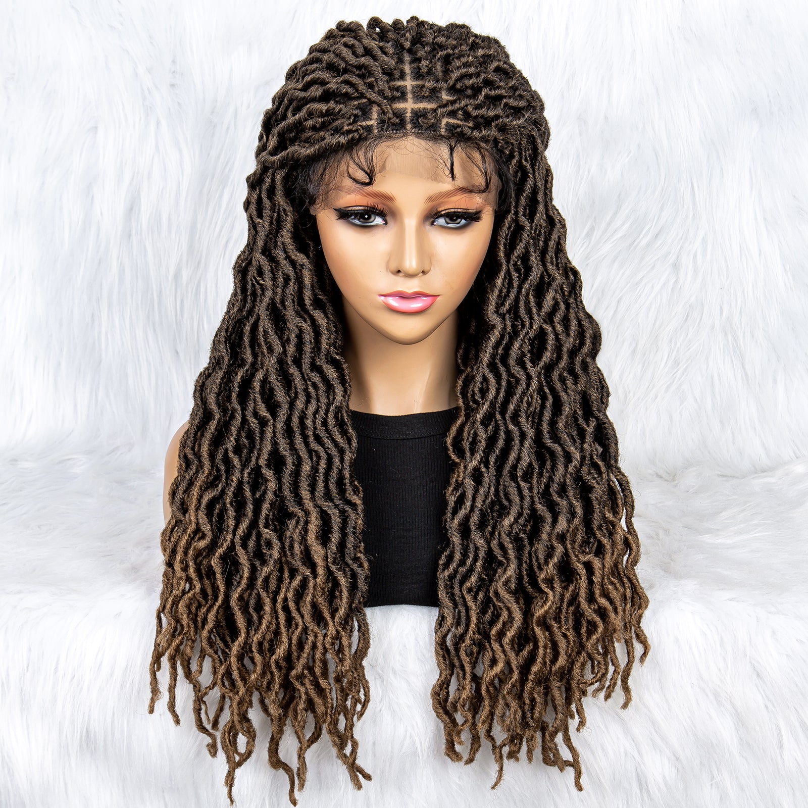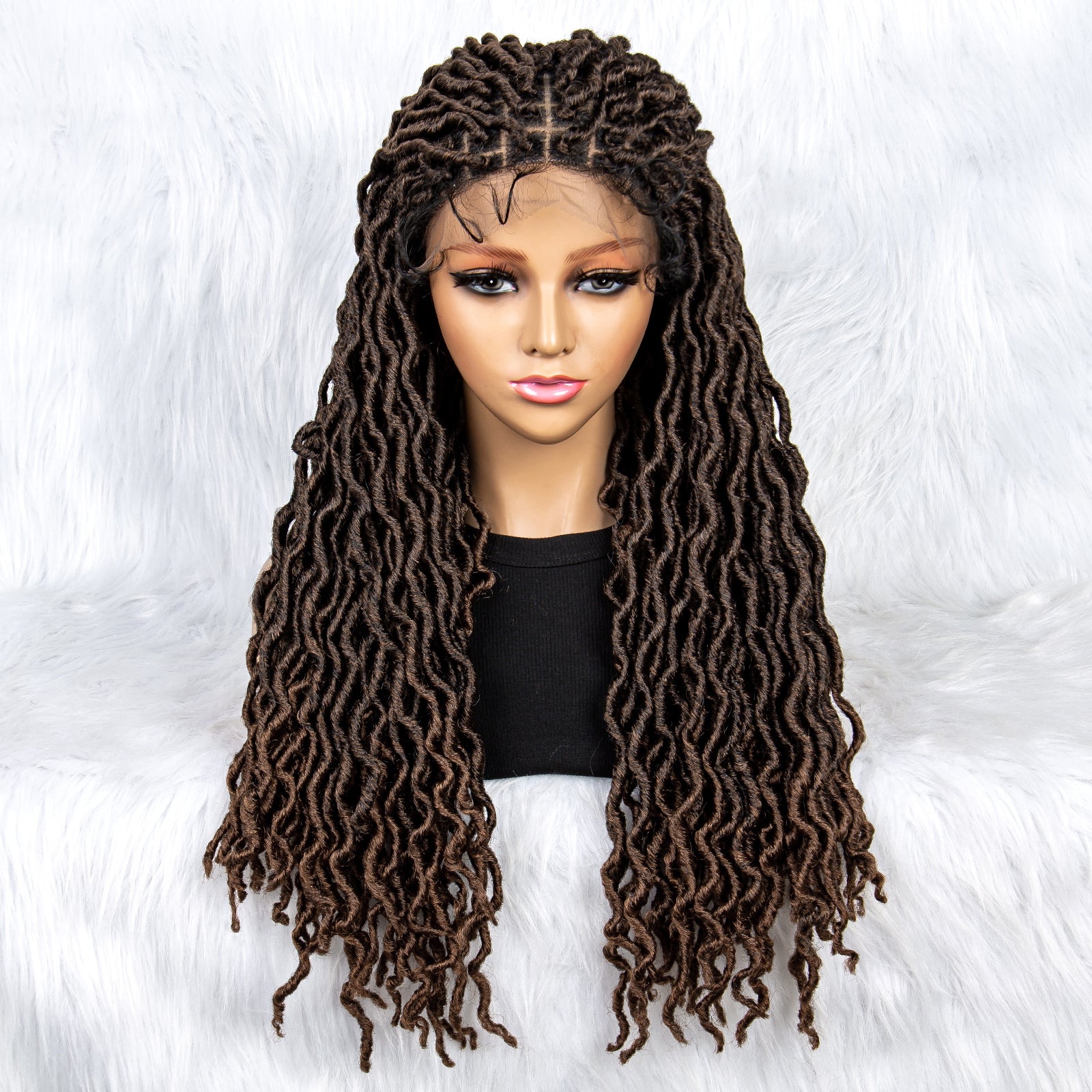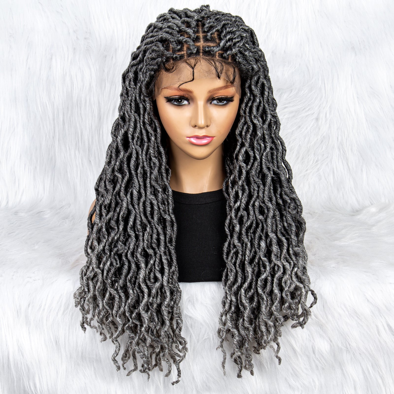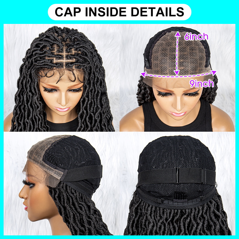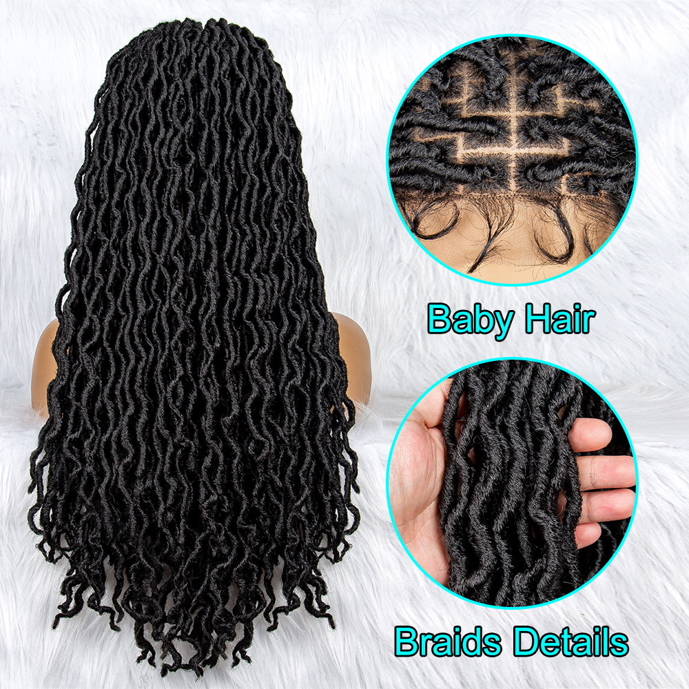 26Inches Lace Front Braided Wigs Synthetic Box Braided Wig Knotless Wig Long Curly Braided Wigs with Baby Hair for African Black Women Daily Use