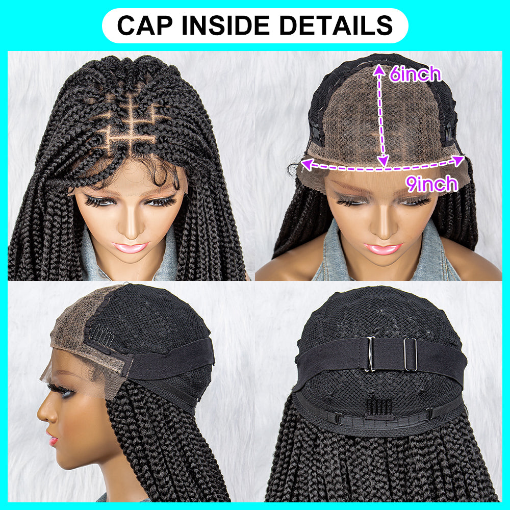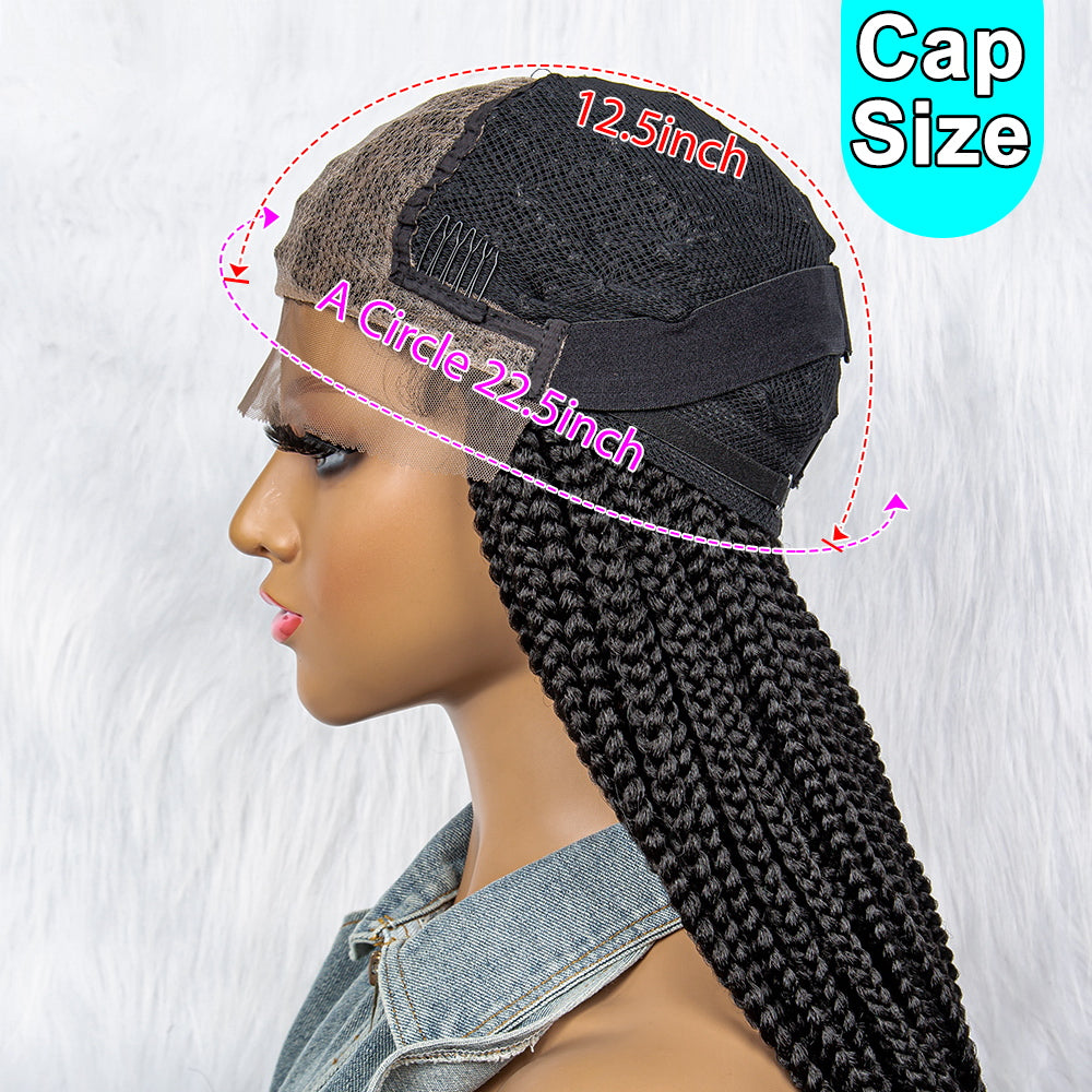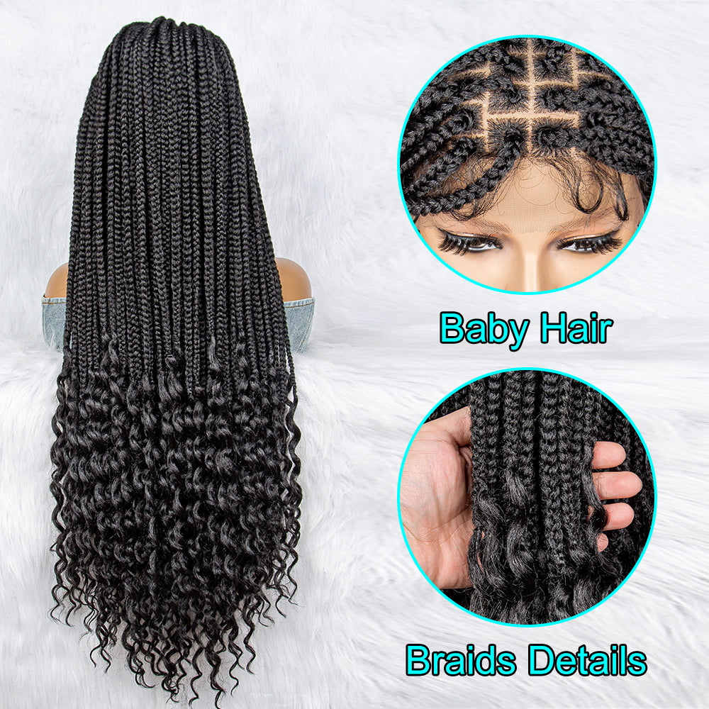 36Inches Curly Synthetic Lace Front Wigs with Baby Hair Long Box Braided Wigs for Black Women Transparent Lace Closure Wig Cronrow Wig Curly Ends
