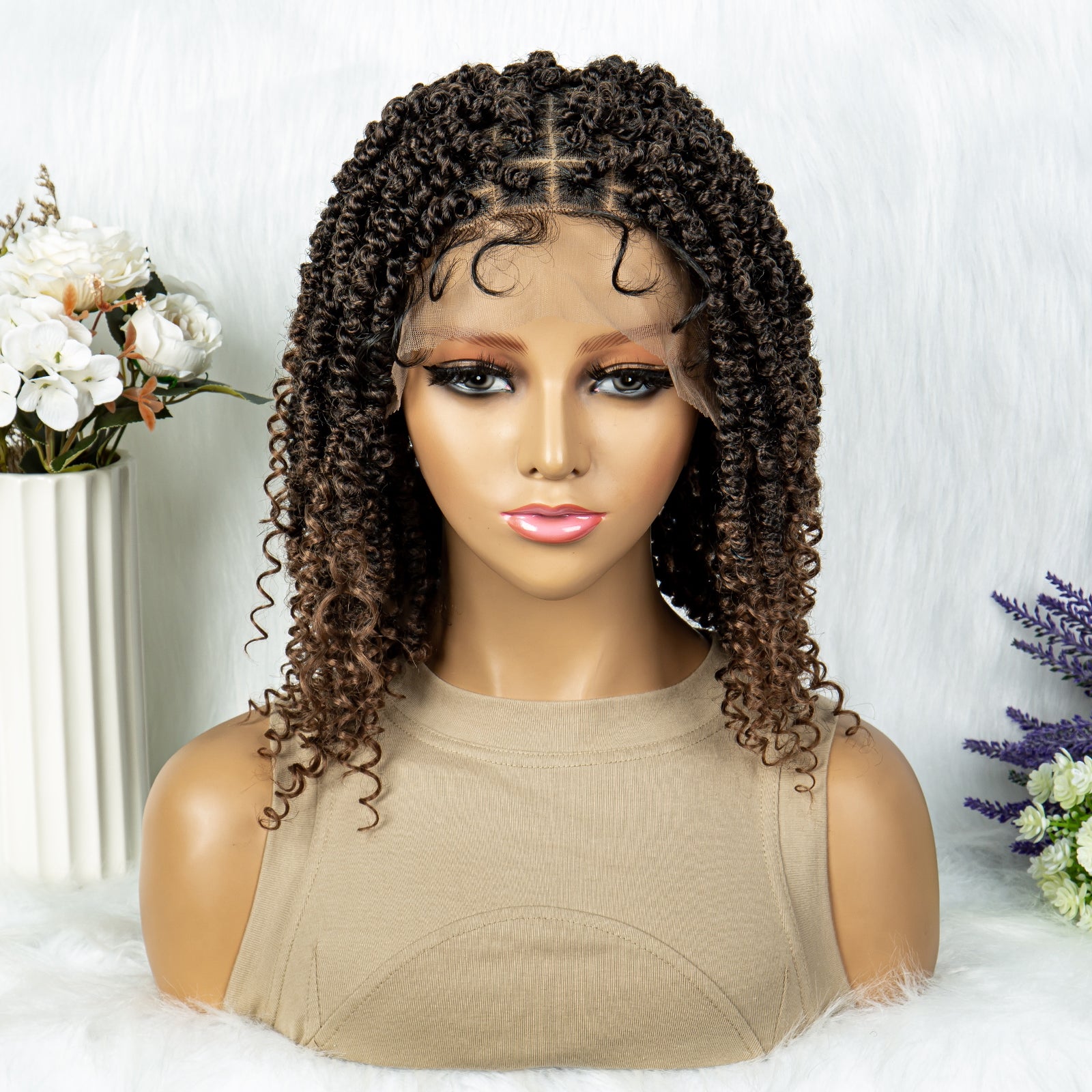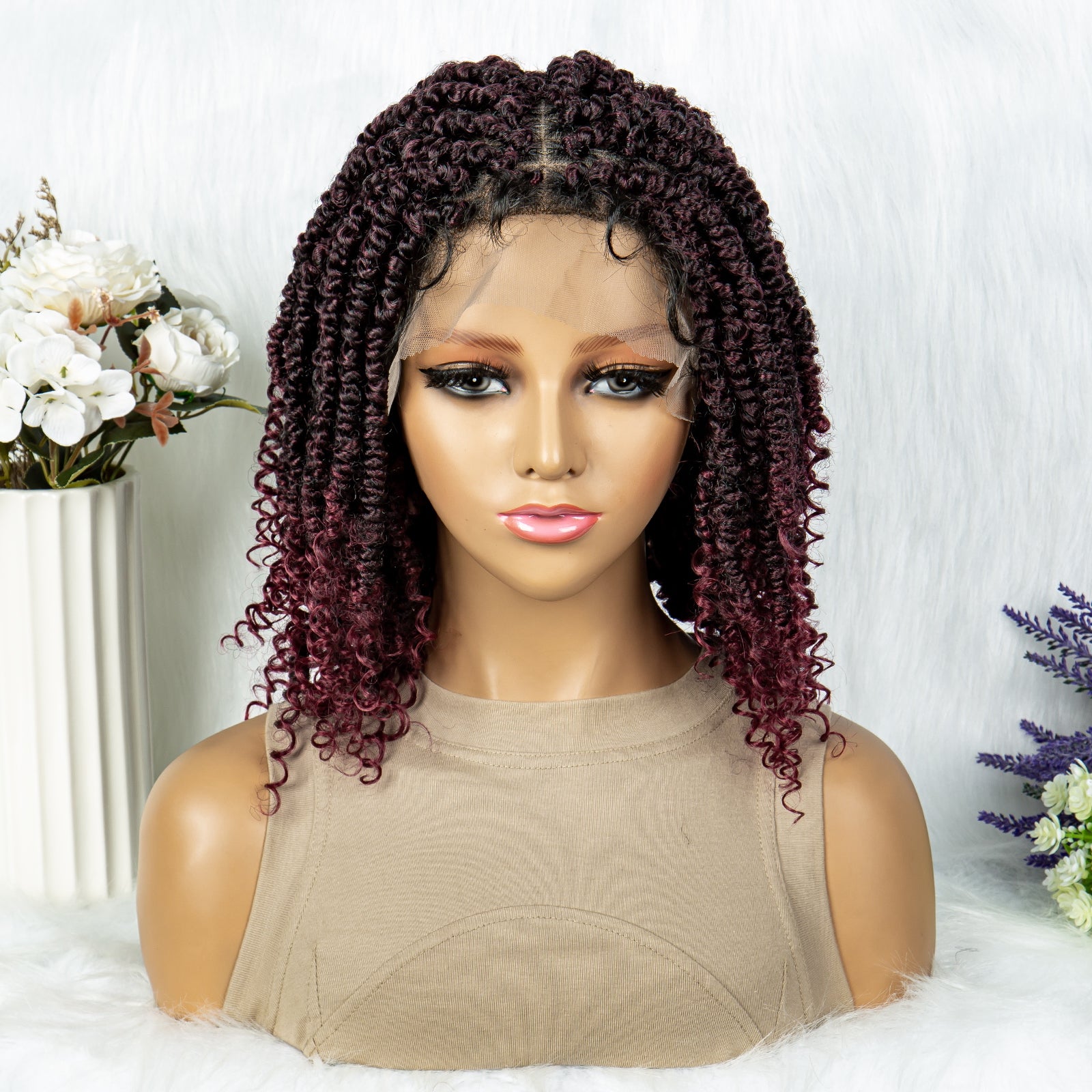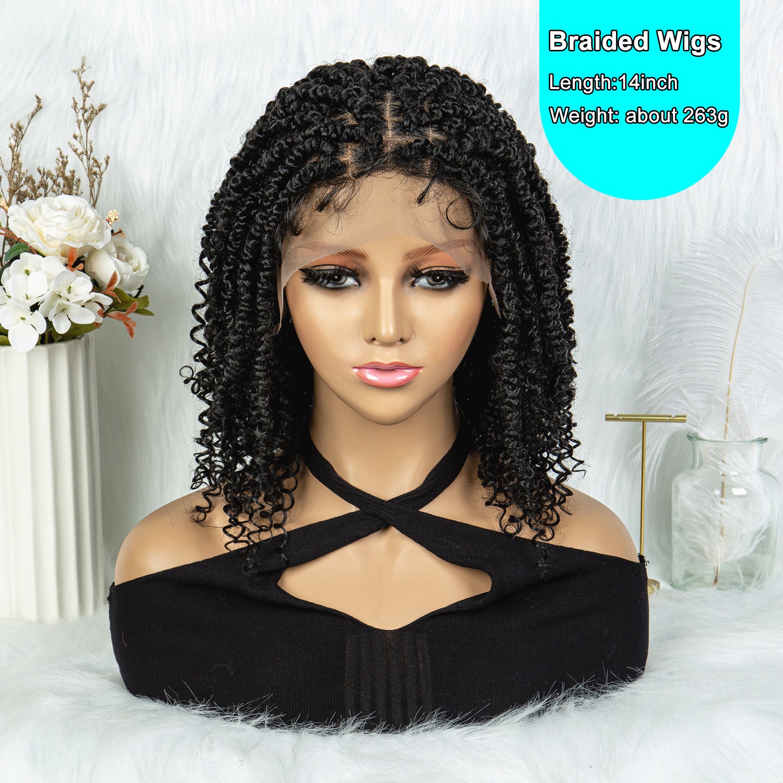 14Inches Synthetic Lace Front Braided Wigs for Black Women Knotless Short Box Wig Braid Braiding Hair Water Wave Wavy Braids Wigs