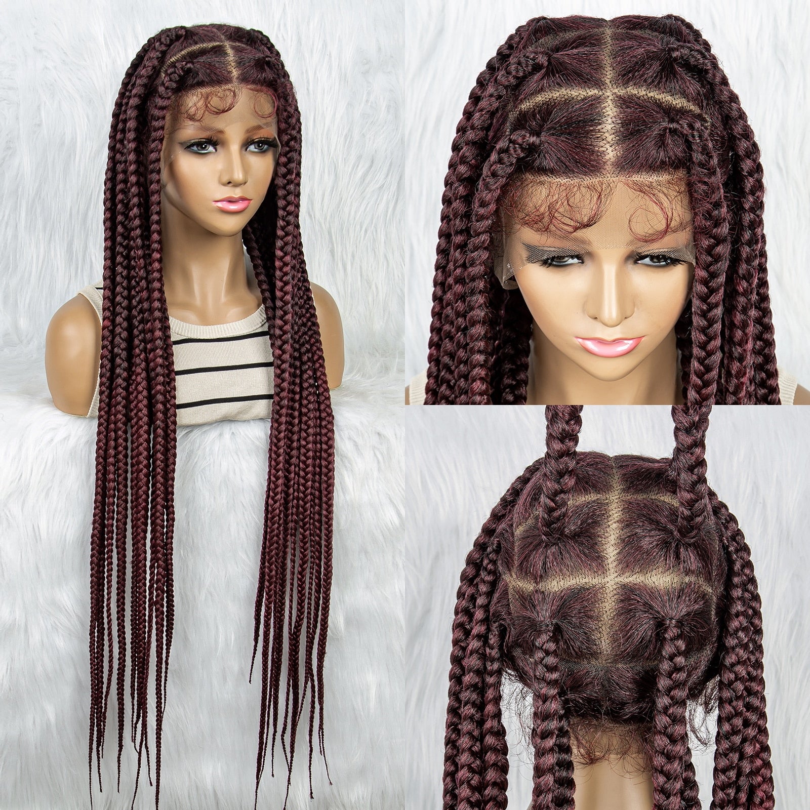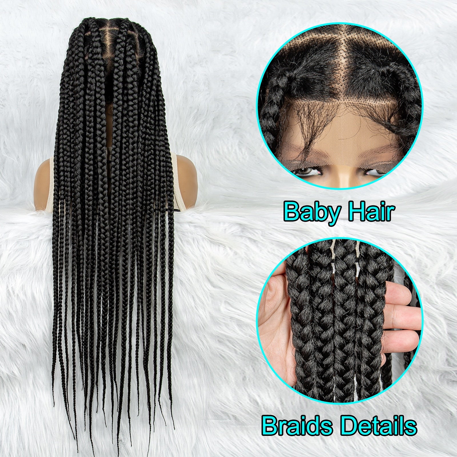 $79 11572# large knotless braids Big BOX Braided Wigs for Black Women Full Lace Wig With Baby Hair