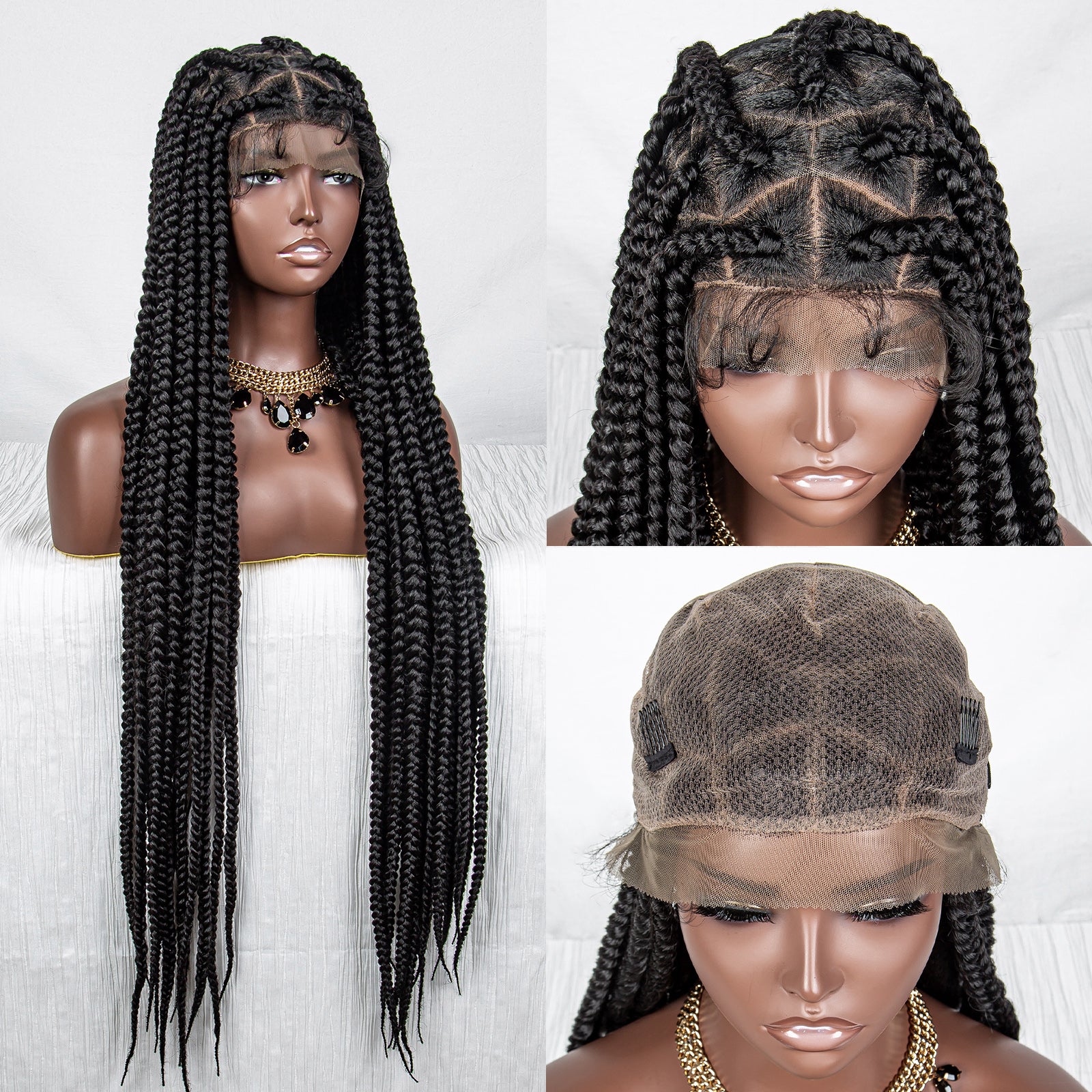 Foot Ball Style Braided Wigs for Black Women Synthetic Lace Front Wig Big Knotless Box Braids Wig With Baby Hair Full Lace Cornrow Braided Wigs