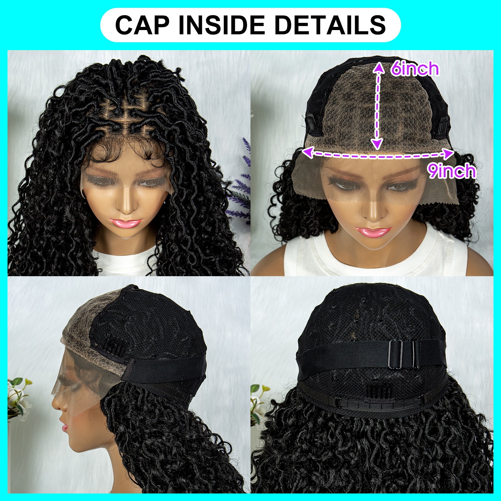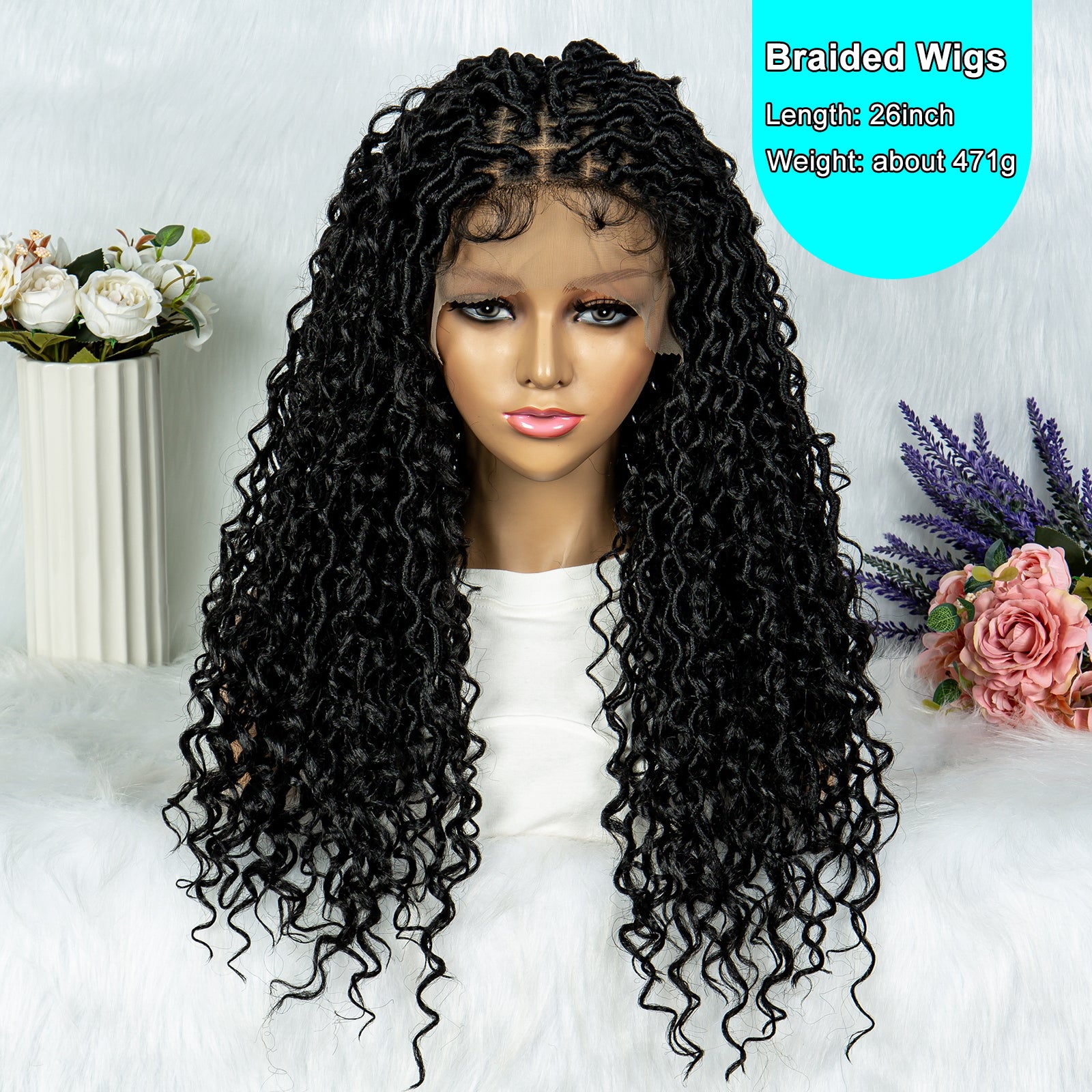 26Inches Synthetic Braided Wigs Box Braid Wigs Curly Ends Square Part Box Braided Lace Front Wigs Pre Plucked with Baby Hair for Women