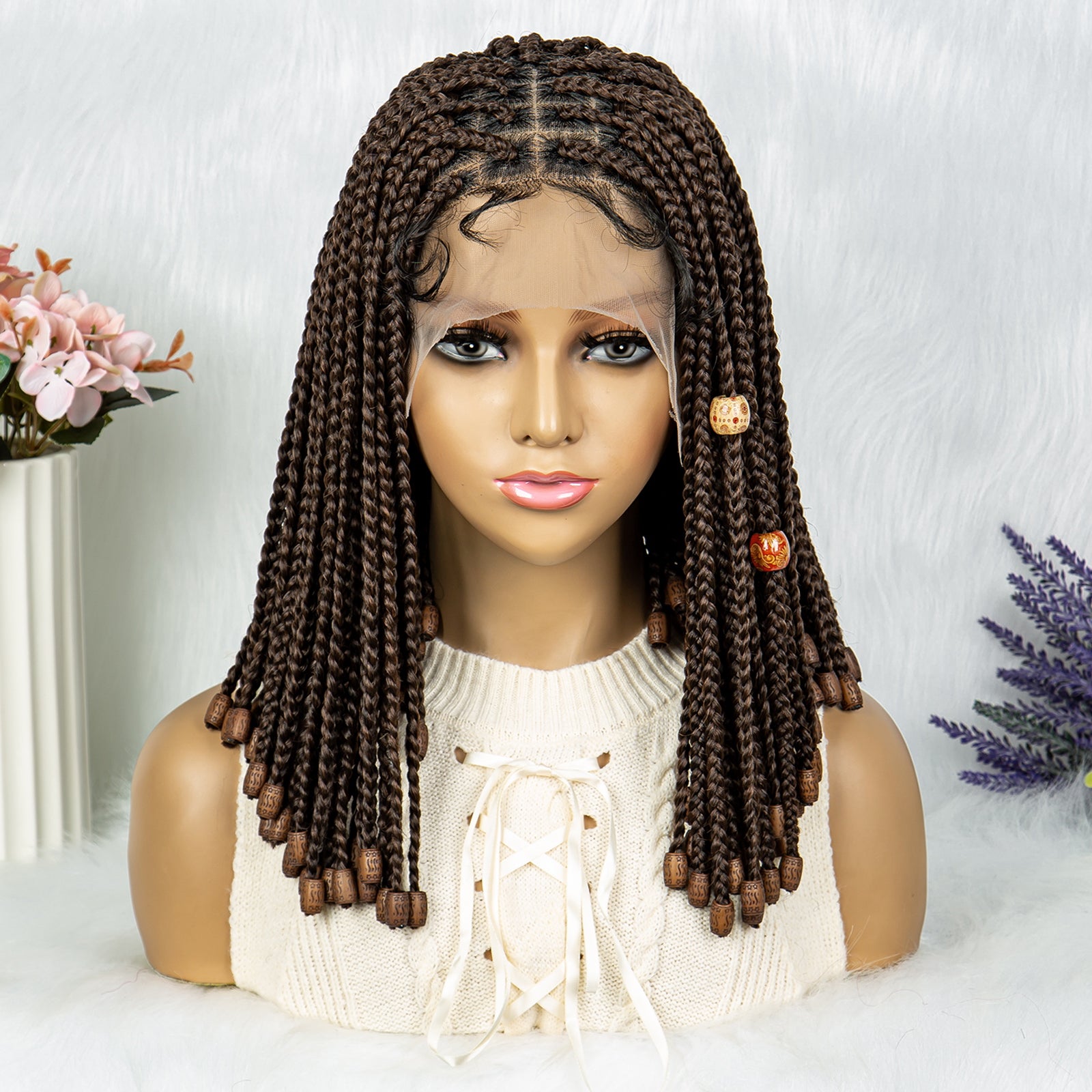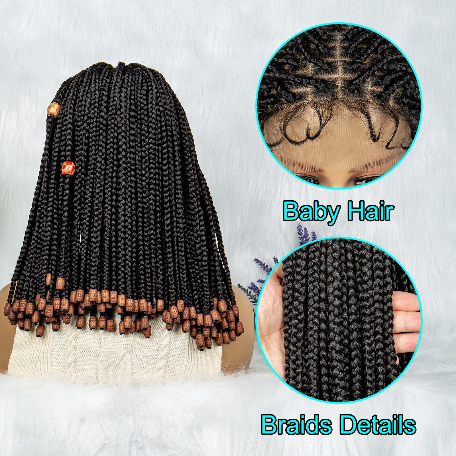 Transparent Synthetic Lace Front Wig Braided Wigs Square Knotless Box Braids Wig with Baby Hair for Black Women 14 Inches