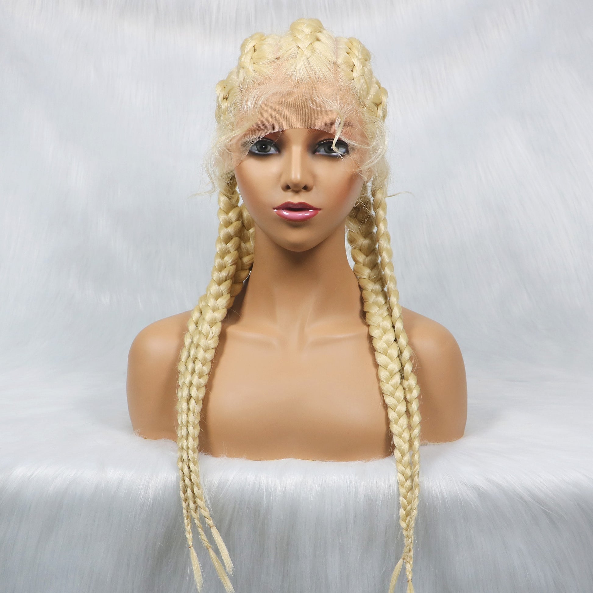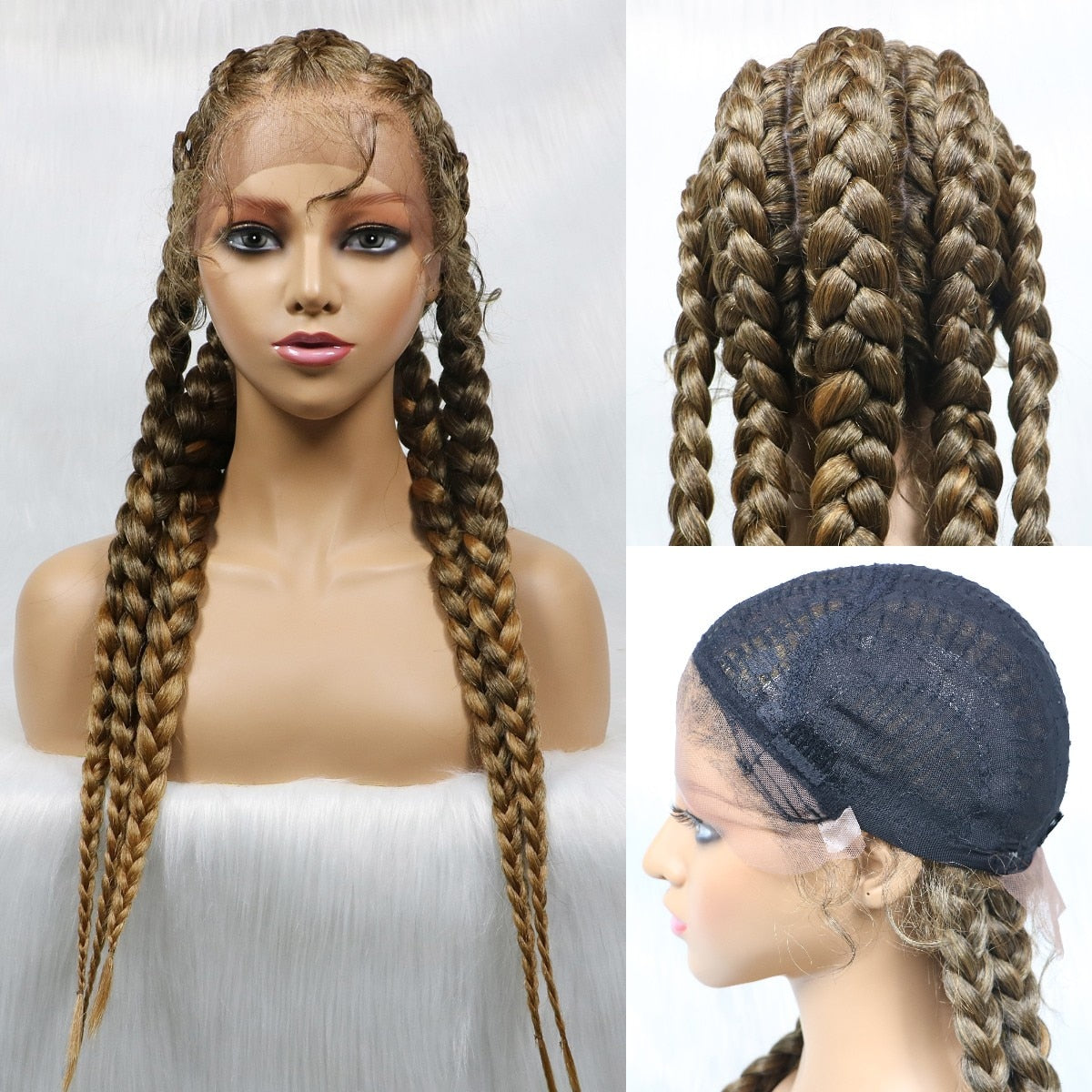 Synthetic Lace Wigs 24 Inches Medium Long Knotless Braided Wigs With Baby Hair 5tracks