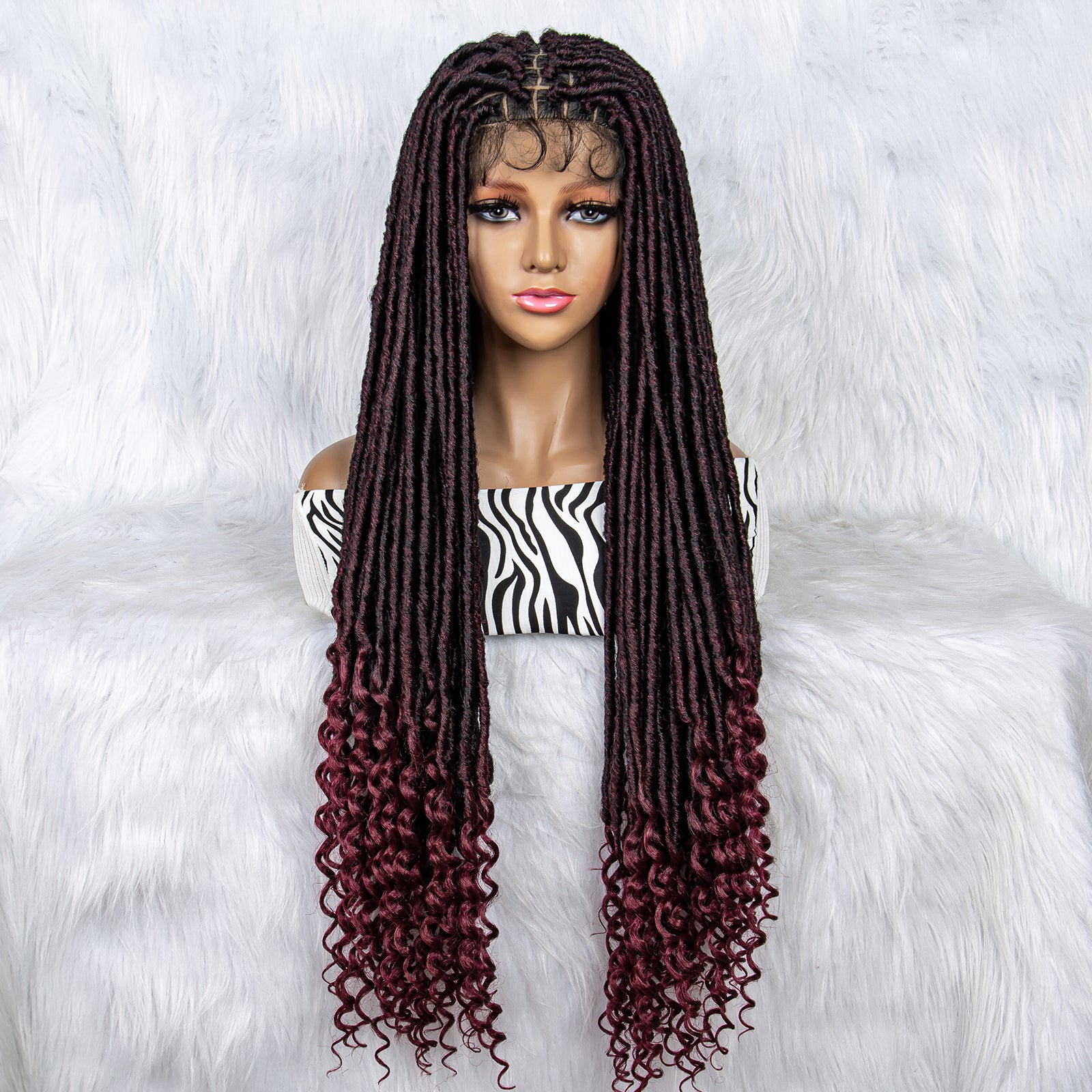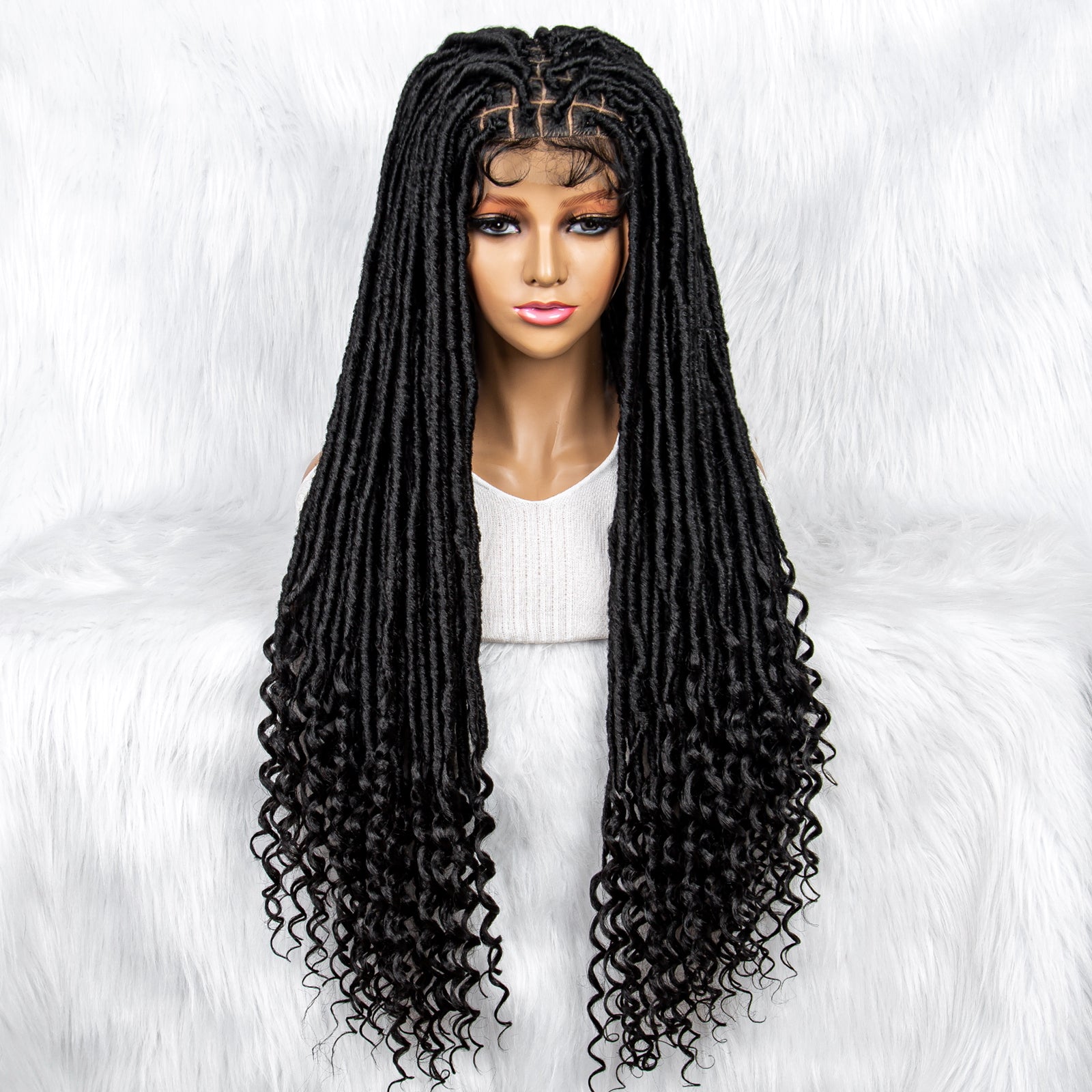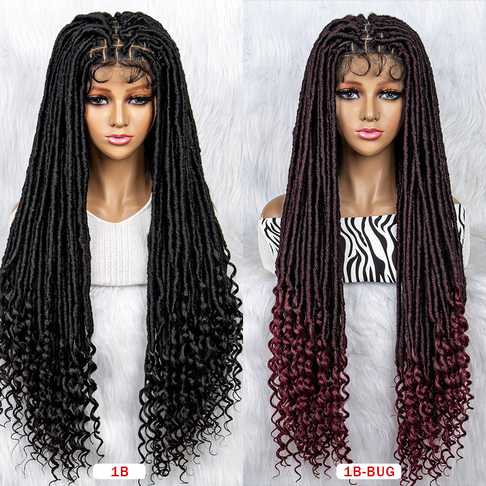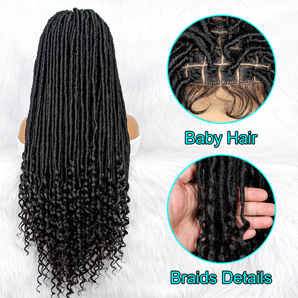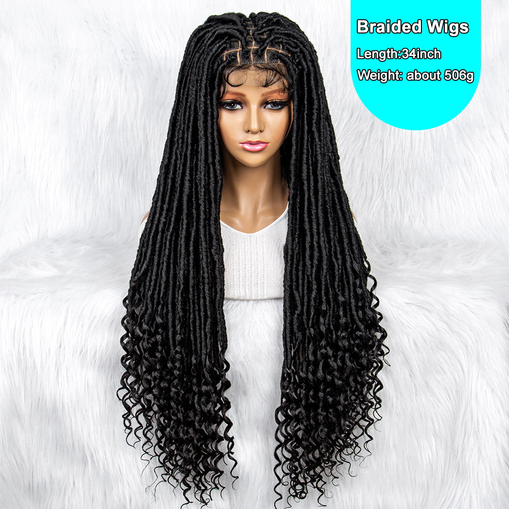 34Inches Curly Ends Wigs Box Braiding Wigs Synthetic Wigs Dreadlocks Braided Wigs Braided Wig for Black Women Daily Use