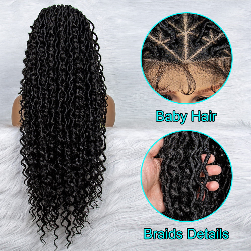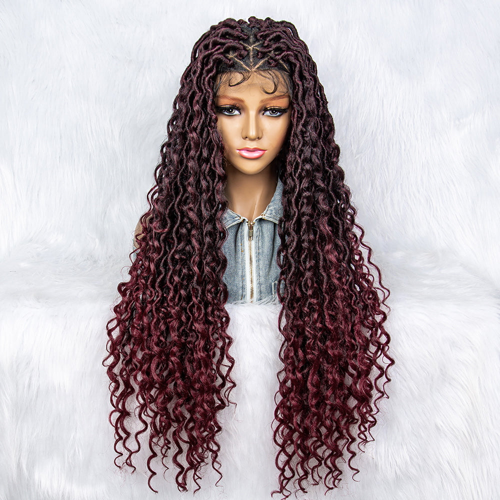 36Inches Full Lace Curly Synthetic Braided Wigs with Baby Hair Natural Color Braid Braiding wigs Ombre Brown Red for Black Women Daily Use