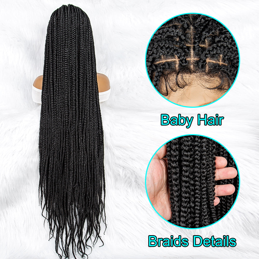 40Inches Super Long Braids Lace Front Braided Wig with Baby Hair Box Braided Wigs Cornrow Braided wig for Black Women Full Lace Long Braided Wig Fake Scalp Heat Resistant