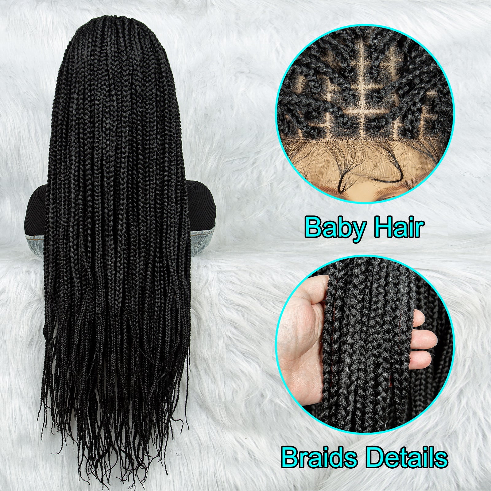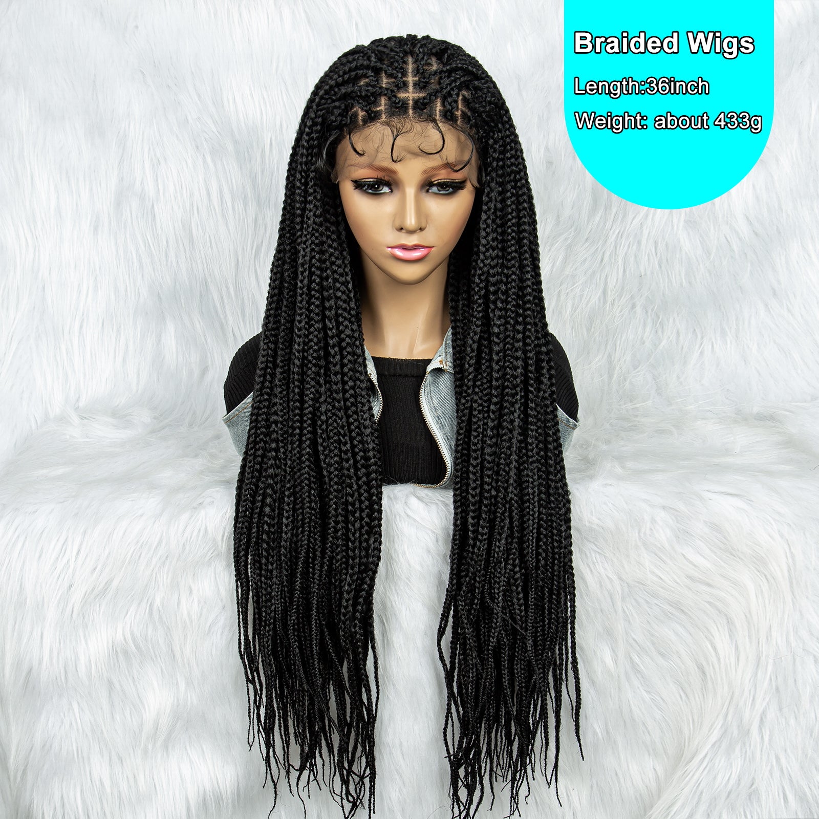 Malaika 36Inches Synthetic Lace Front Wig Braided Wigs African Cornrow Braids wig with Baby Hair Full Lace Wig