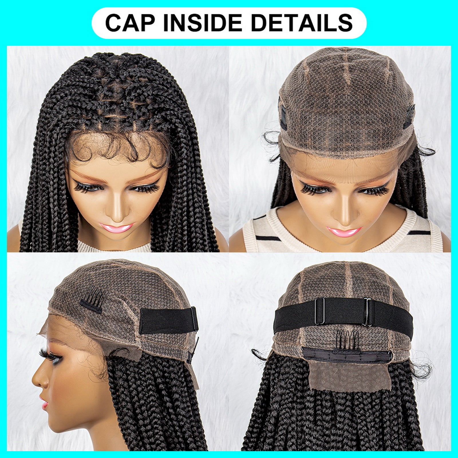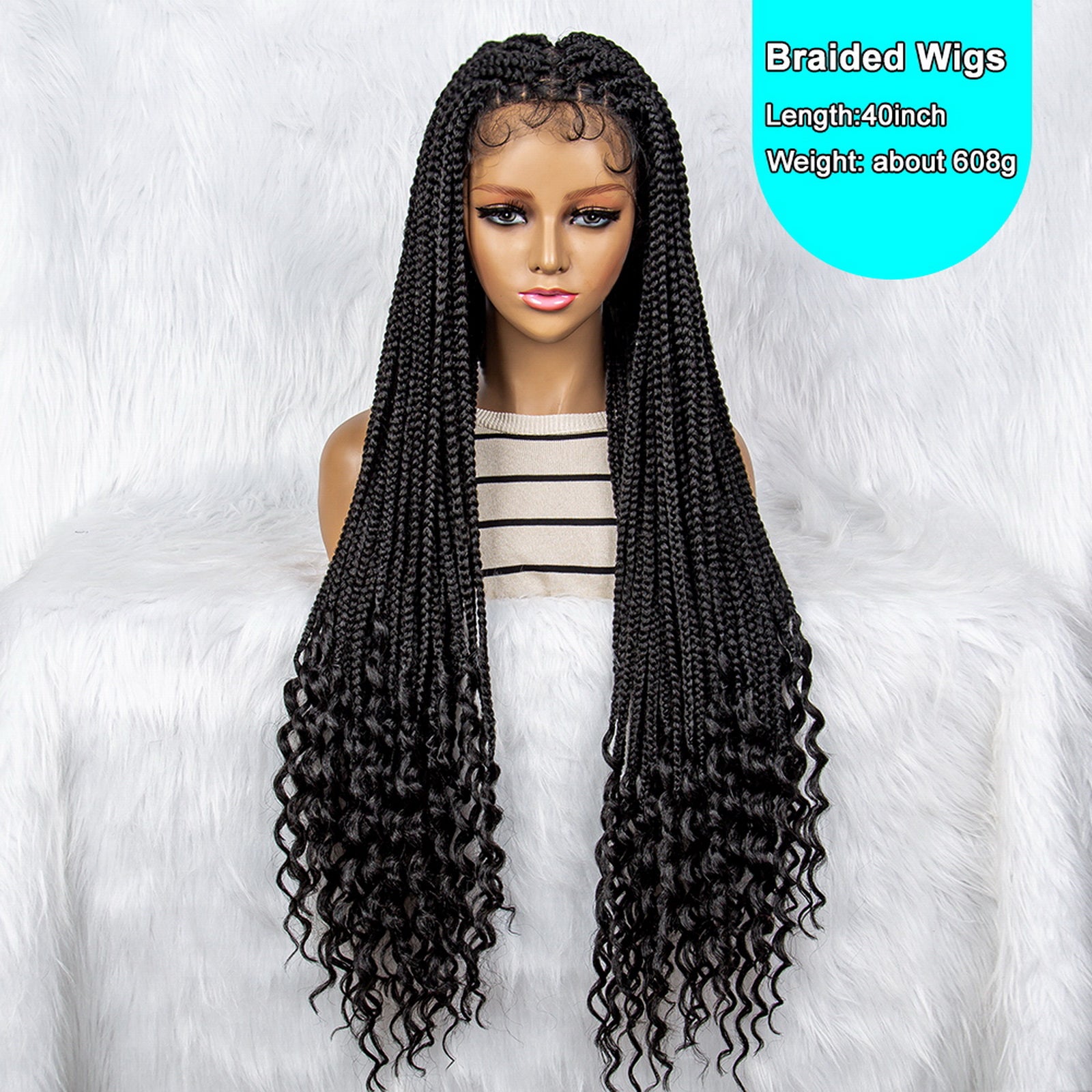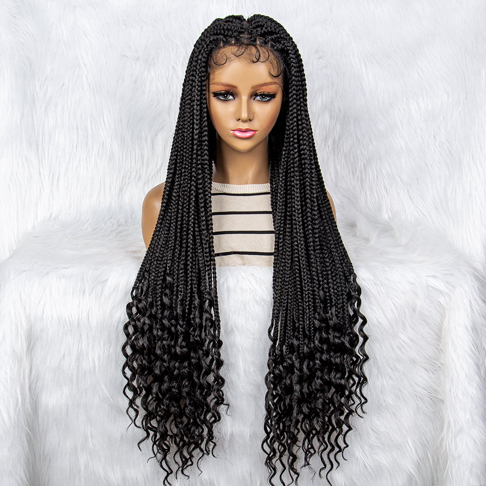 40Inches Long Curly Synthetic Full Lace Braided Wigs Curly Ends Lace Front Cornrow Braiding Knotless Natural Color Braided Wig for Black Women Daily Use