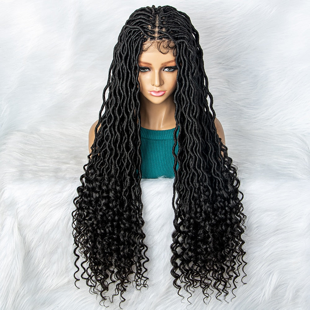 Hot Sales 32" Synthetic Lace Front Wig Braided Wigs with Curly Dreadlocks Wigs
