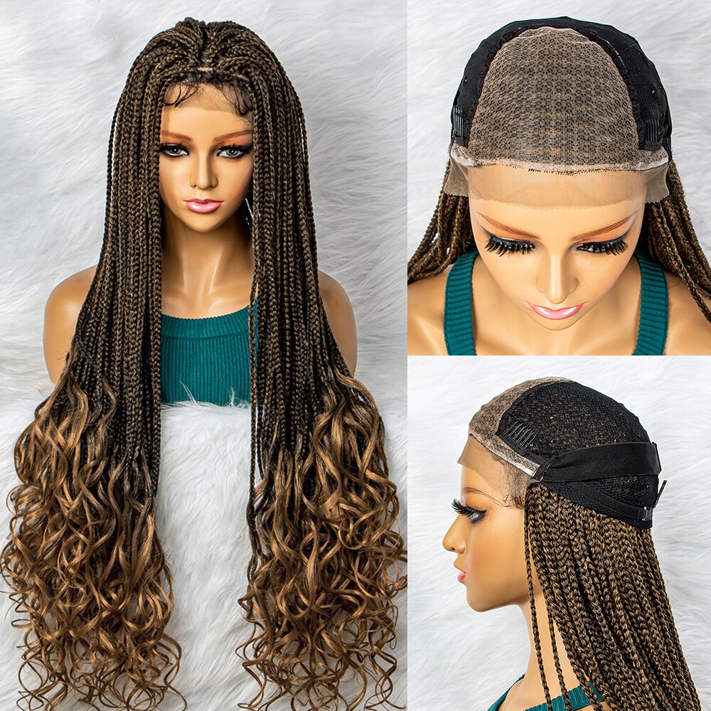 New Arrival Braided Wigs Synthetic Lace Front Wig Braid African With Baby Hair Braided Lace Front Wigs Water Wavy Wigs