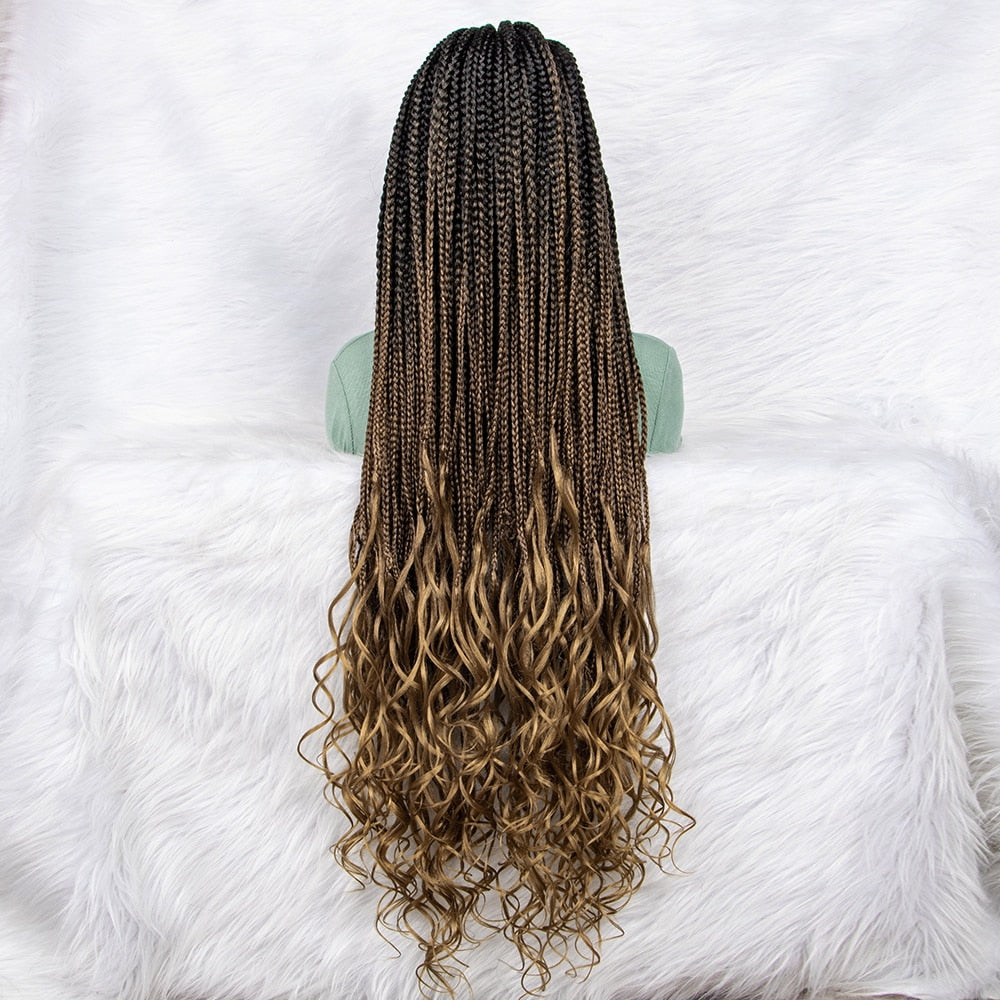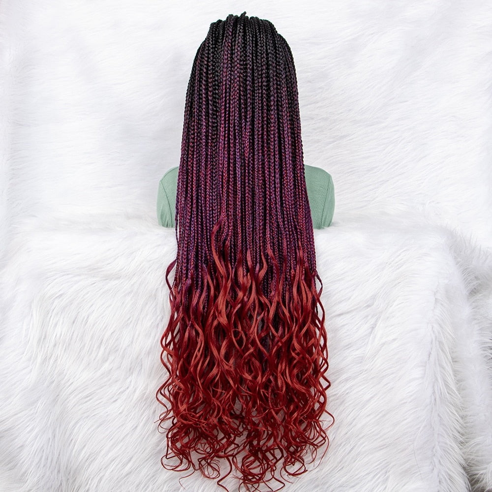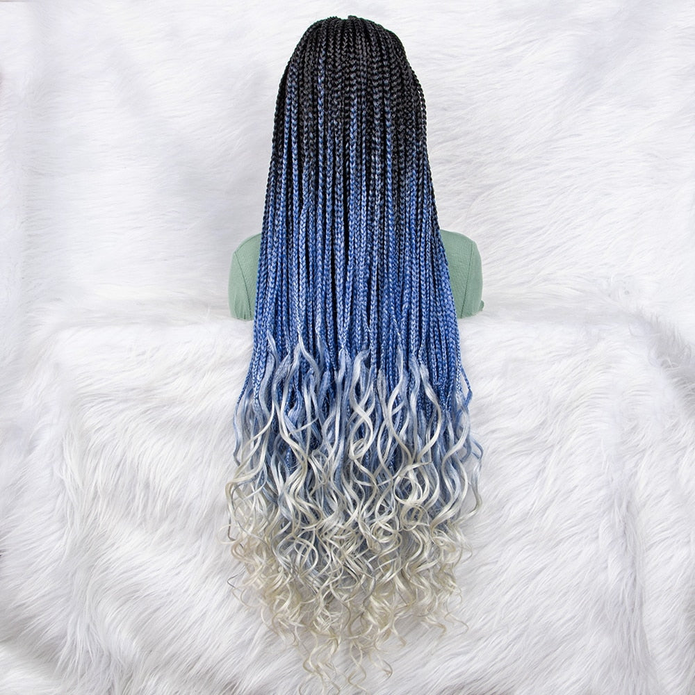 New Gradient Color Braided Wigs Synthetic Lace Front Wig 9x6 Lace Front Knotless Box Braided Wig Water Wave Wavy for Black Women