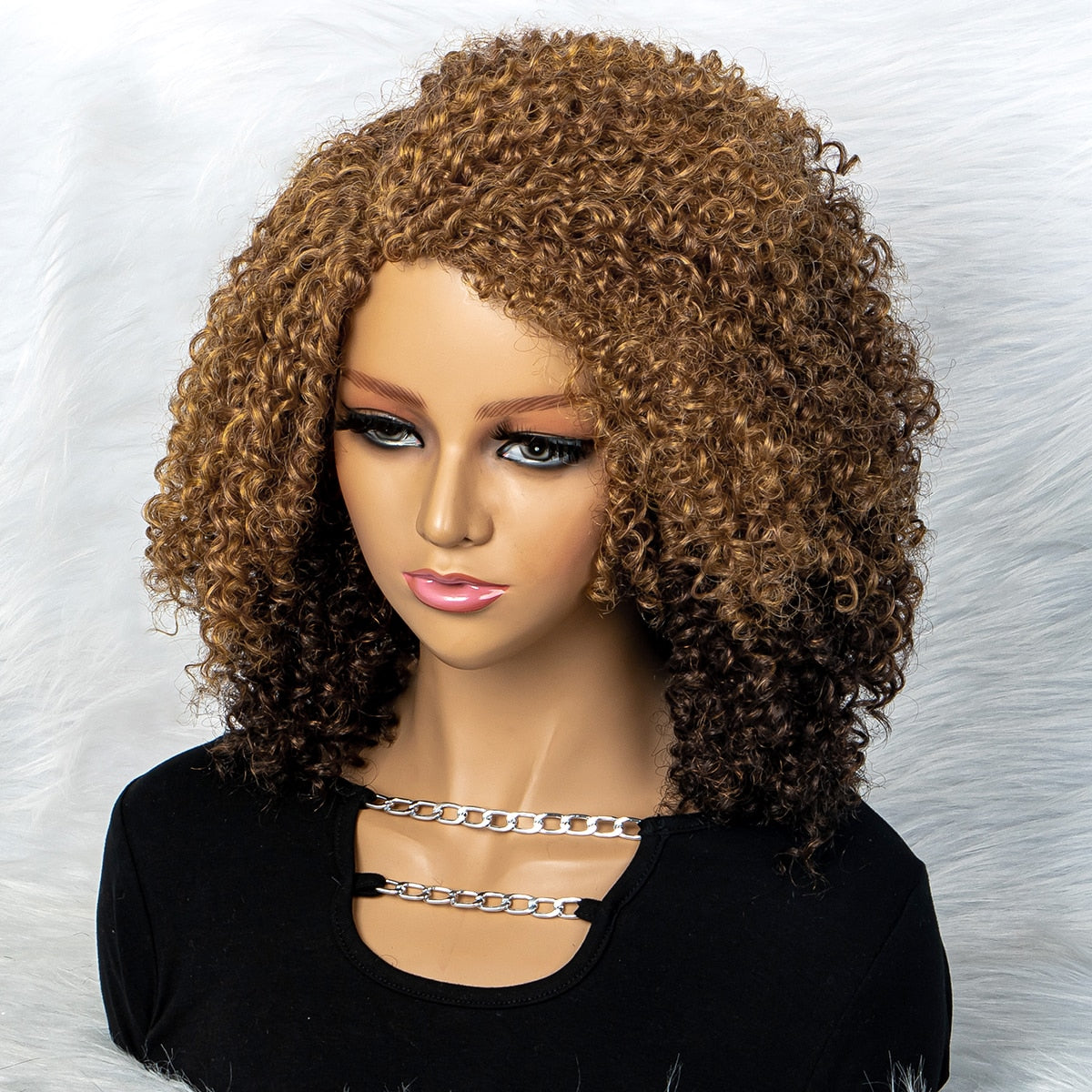 New Short Ombre Hair Afro Kinky Curly Wigs Synthetic For Black Women