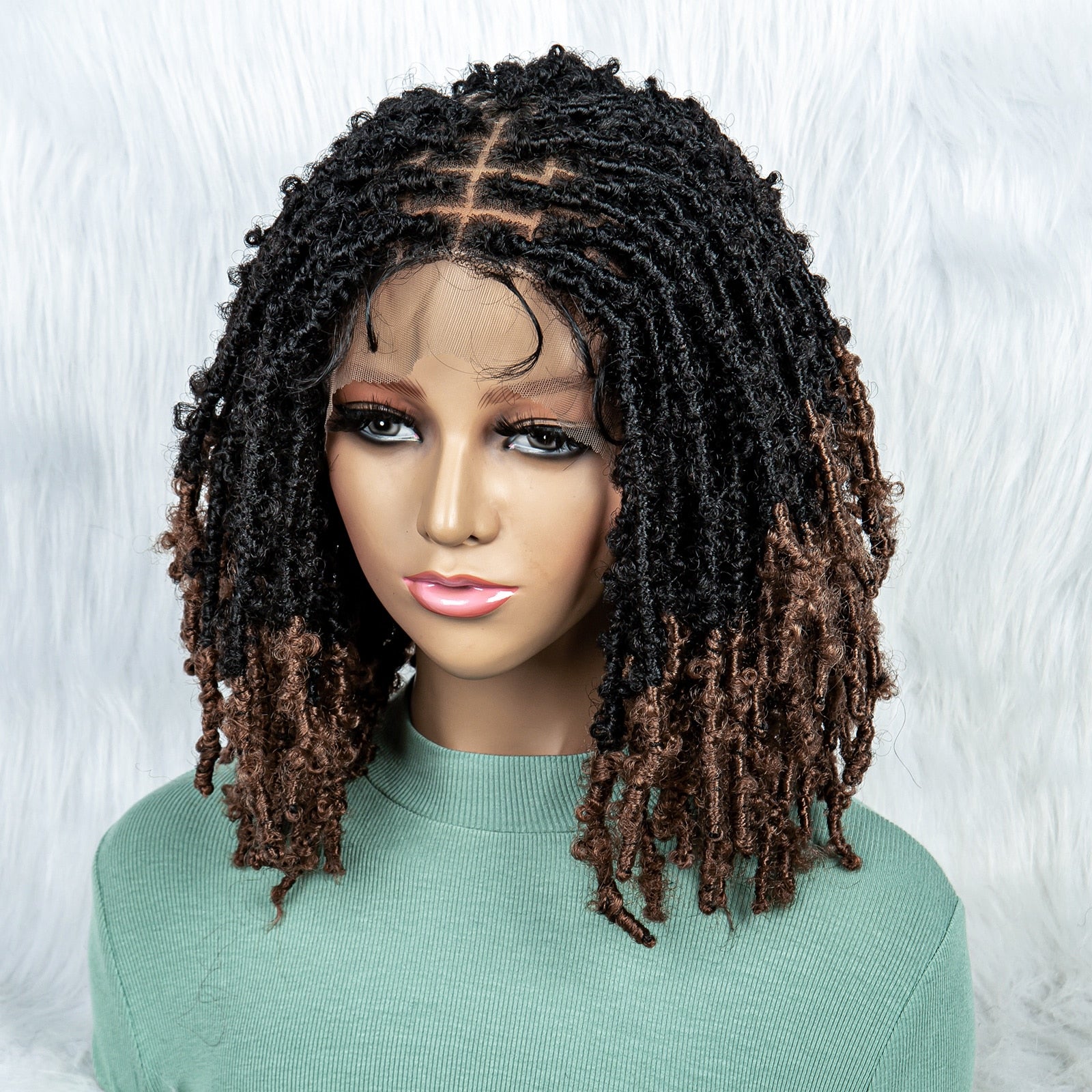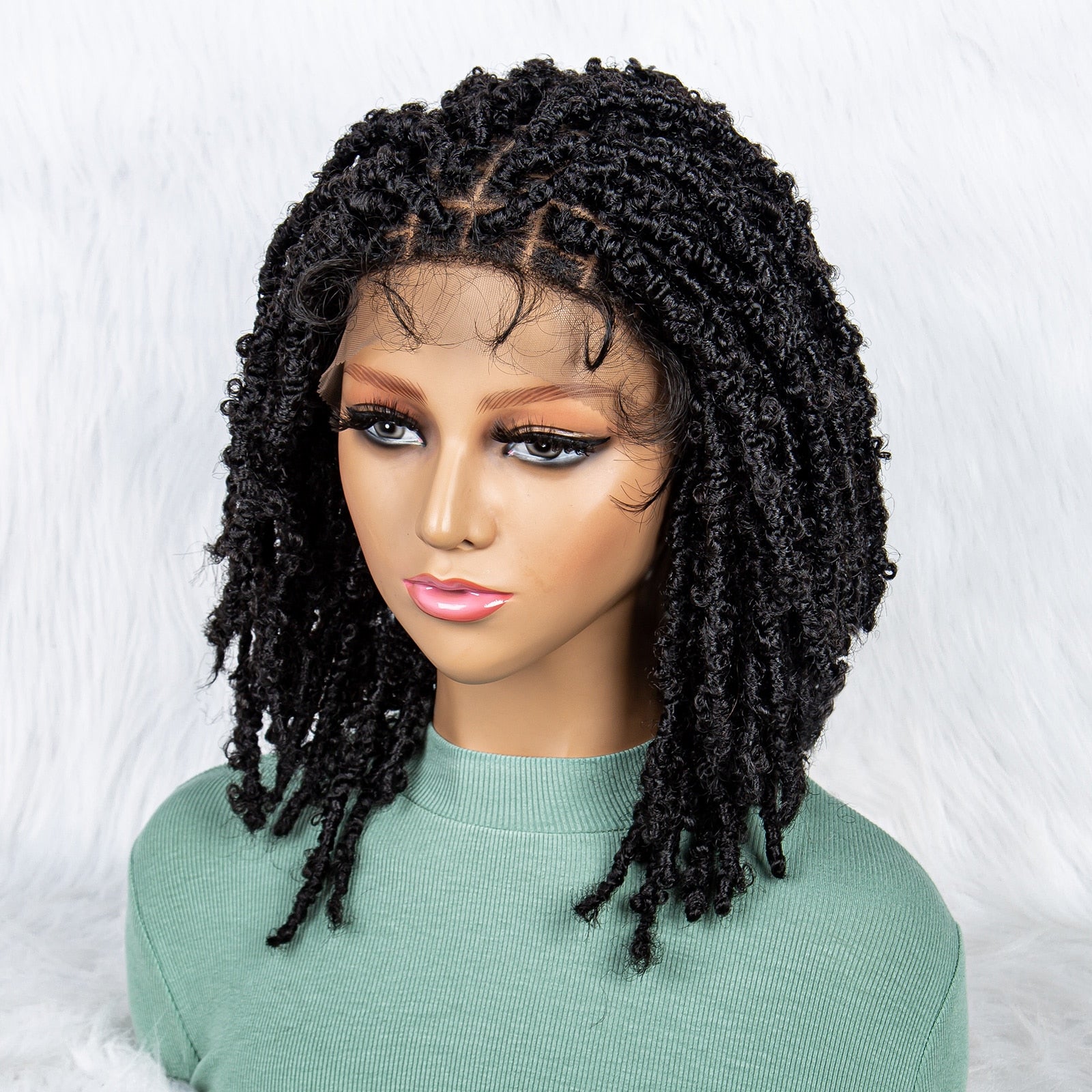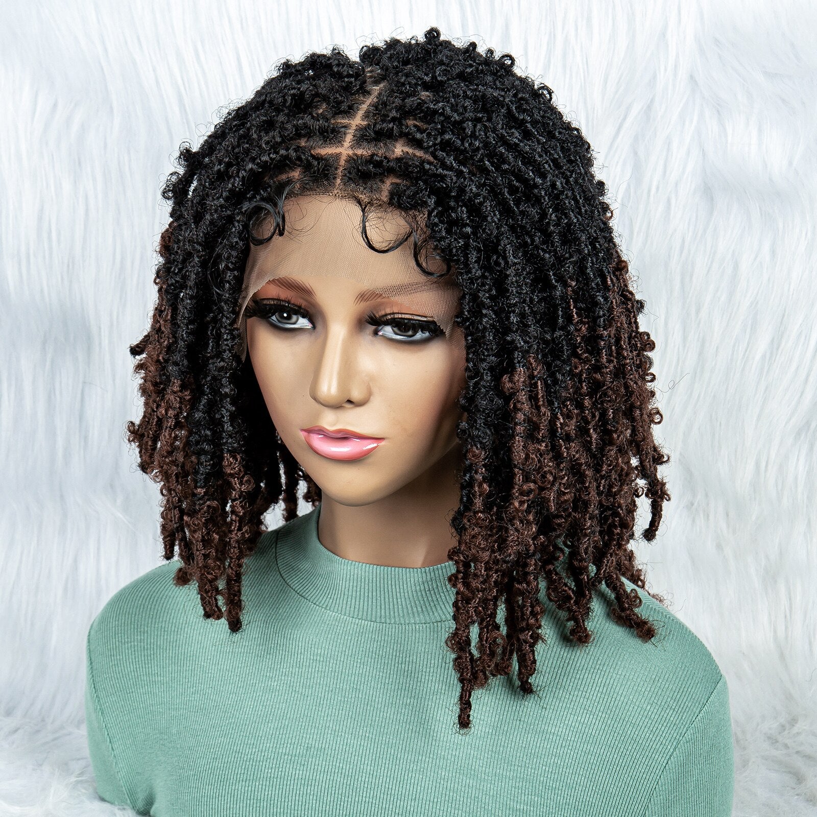 009 # 14 inches Short Locs Wigs for Black Women Men Afro Curly Synthetic Wig