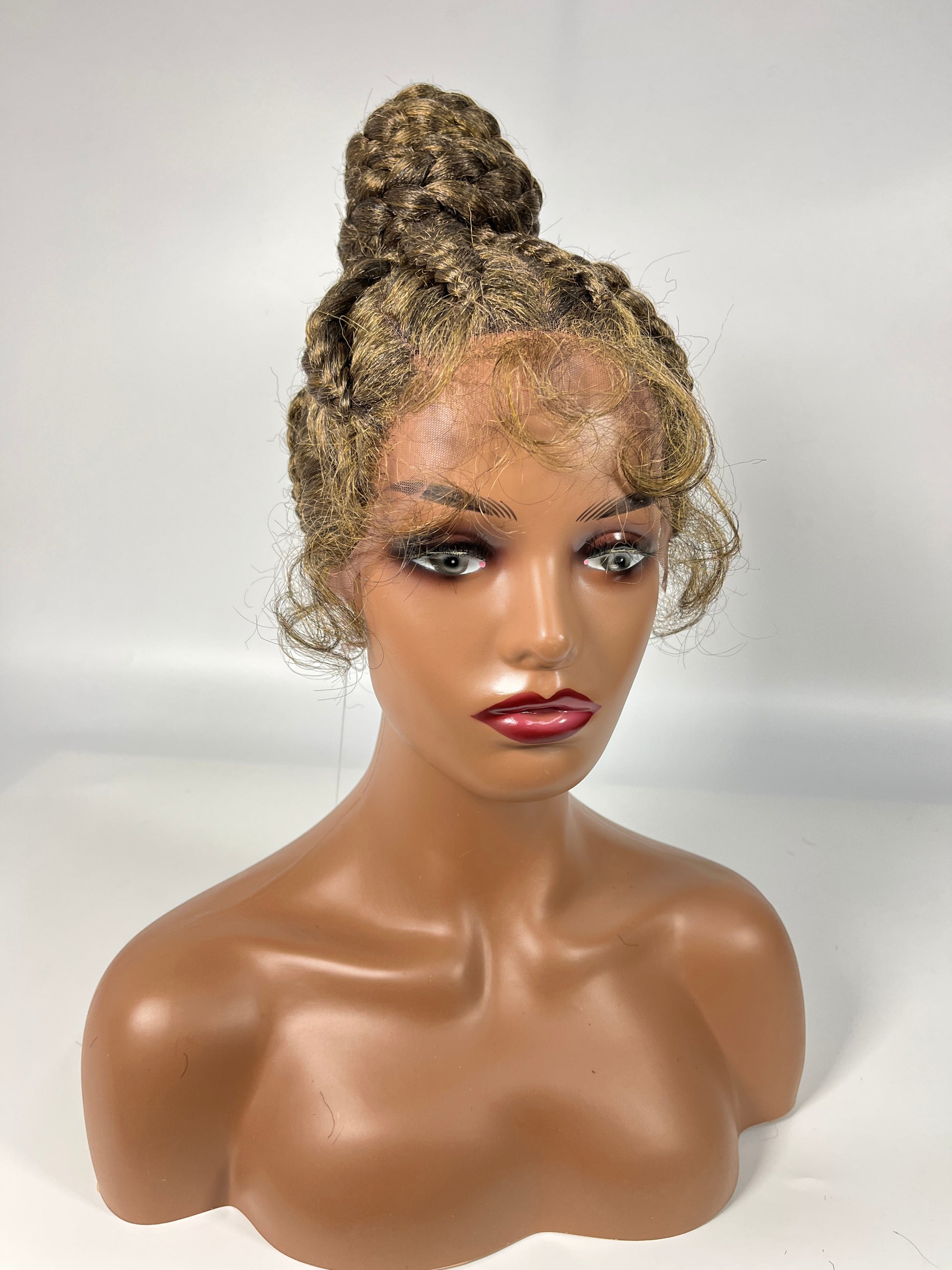 High Bun Style Cornrow Braided Wigs Hair Natural Lace Braiding Wigs